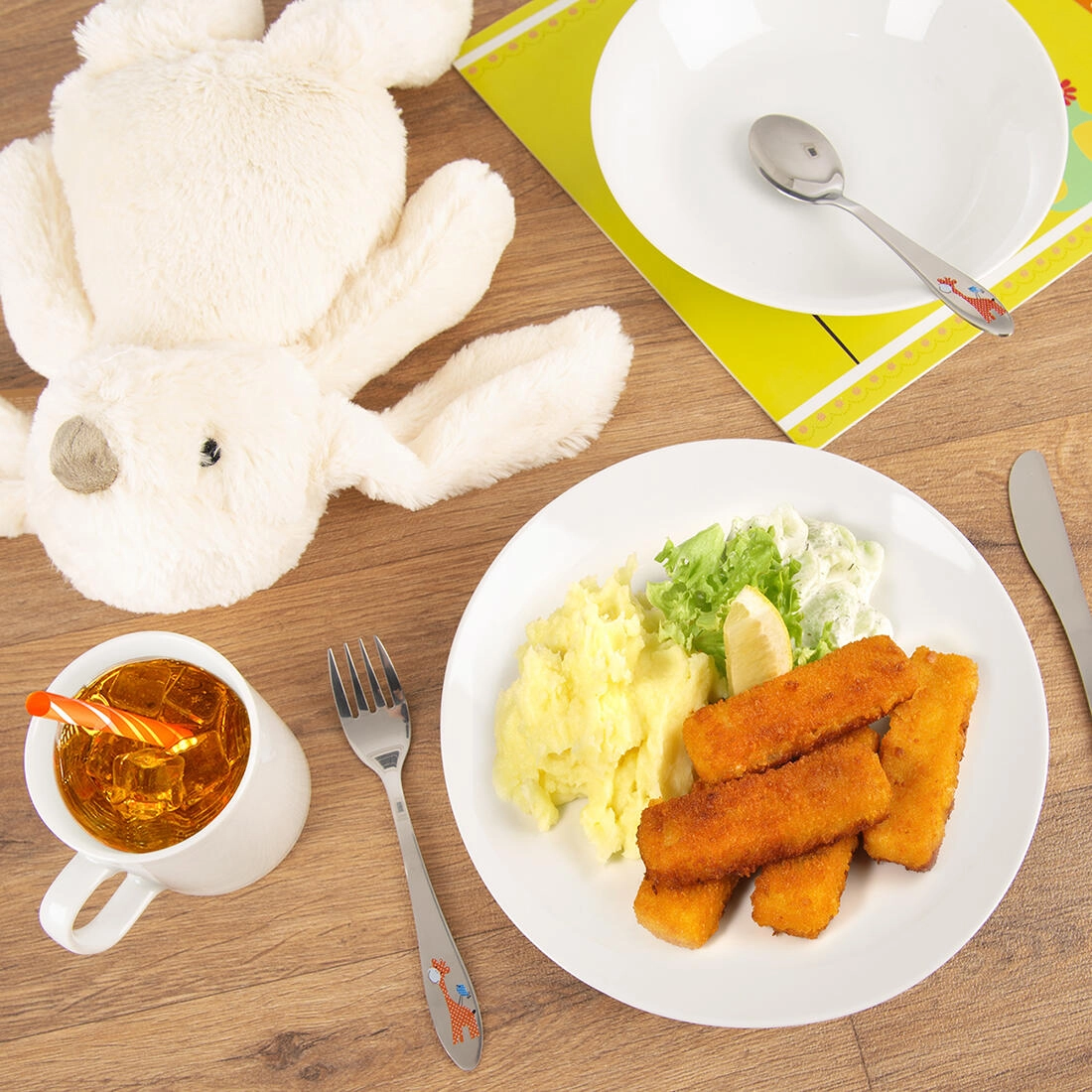 Het elegante kinderplateau van porselein is een uitstekende keuze voor dagelijks gebruik thuis of op de opvang. Dankzij de diameter van 21 cm biedt het voldoende ruimte voor kinderporties en het slijtvaste porselein zorgt voor een lange levensduur, zelfs bij frequent afwassen.