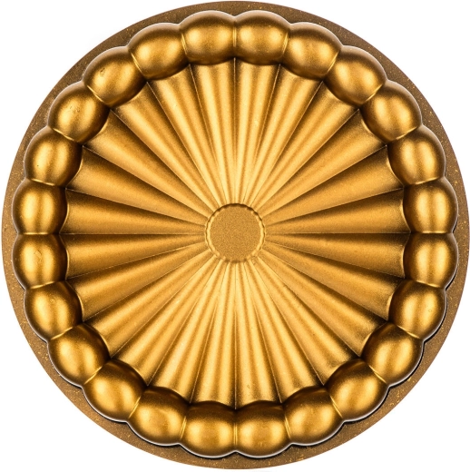 Ontdek de betrouwbare taartvorm MAJESTIC Tartty met een diameter van 27 cm, die robuust gegoten aluminium voor uitstekende warmteverdeling combineert met een antiaanbaklaag voor probleemloos lossen. Creëert een opvallende vorm met decoratieve ribbels, zodat uw desserts moeiteloos prachtig ogen.