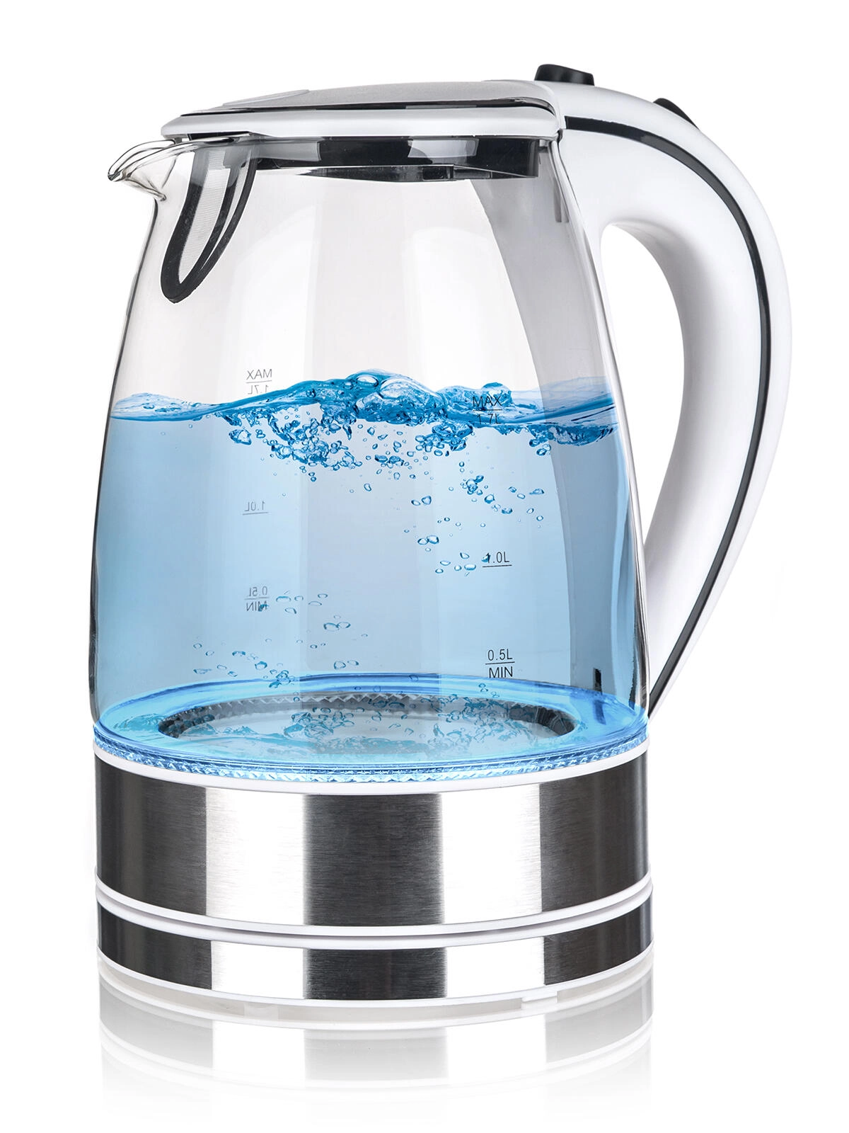De glazen waterkoker BLAZE combineert modern design met functionaliteit. Het vlakke verwarmingselement versnelt het opwarmen en de doorzichtige behuizing met LED-achtergrondverlichting geeft je keuken een premium uitstraling. Dankzij de inhoud van 1,7 l bereid je eenvoudig thee of koffie voor het hele gezin.