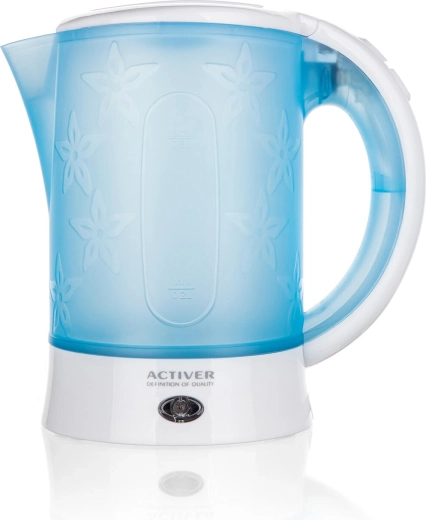 Lichte en compacte reiswaterkoker met een inhoud van 0,6 l, ideaal voor hotel, camping en kantoor. Biedt snelle verwarming 550–650 W, 2 kopjes en lepeltjes in de set, halftransparante behuizing met waterpeilindicator, automatische en handmatige uitschakeling en oververhittingsbeveiliging.