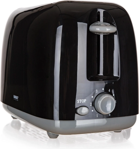 Praktische broodrooster voor twee toasts in een elegante zwart‑grijze kleur biedt een vermogen van 650–750 W, 6 bruiningsniveaus en automatische uitschakeling voor een veilige en comfortabele bediening. Dankzij de knop voor onmiddellijke onderbreking en de uittrekbare kruimellade is bediening en onderhoud maximaal eenvoudig.