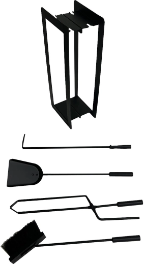 De set bevat een pook voor het verdelen van kooltjes, een tang voor het veilig bijvullen van hout, een schep voor het verwijderen van as en een borstel voor het naschoonmaken van de vuurhaard. Met deze set maak je haard of kachel snel en zonder rommel klaar voor de volgende stookbeurt.