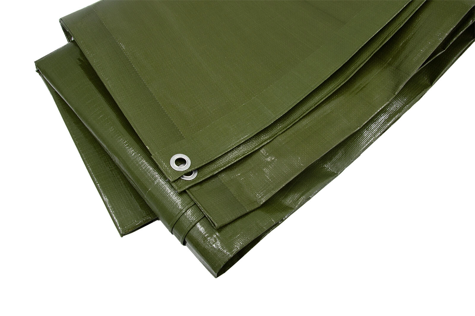 Langs de rand zijn metalen ogen aangebracht voor eenvoudig en veilig vastzetten met touw of elastisch koord. De groene kleur gaat onopvallend op in zowel tuin- als bouwomgevingen.