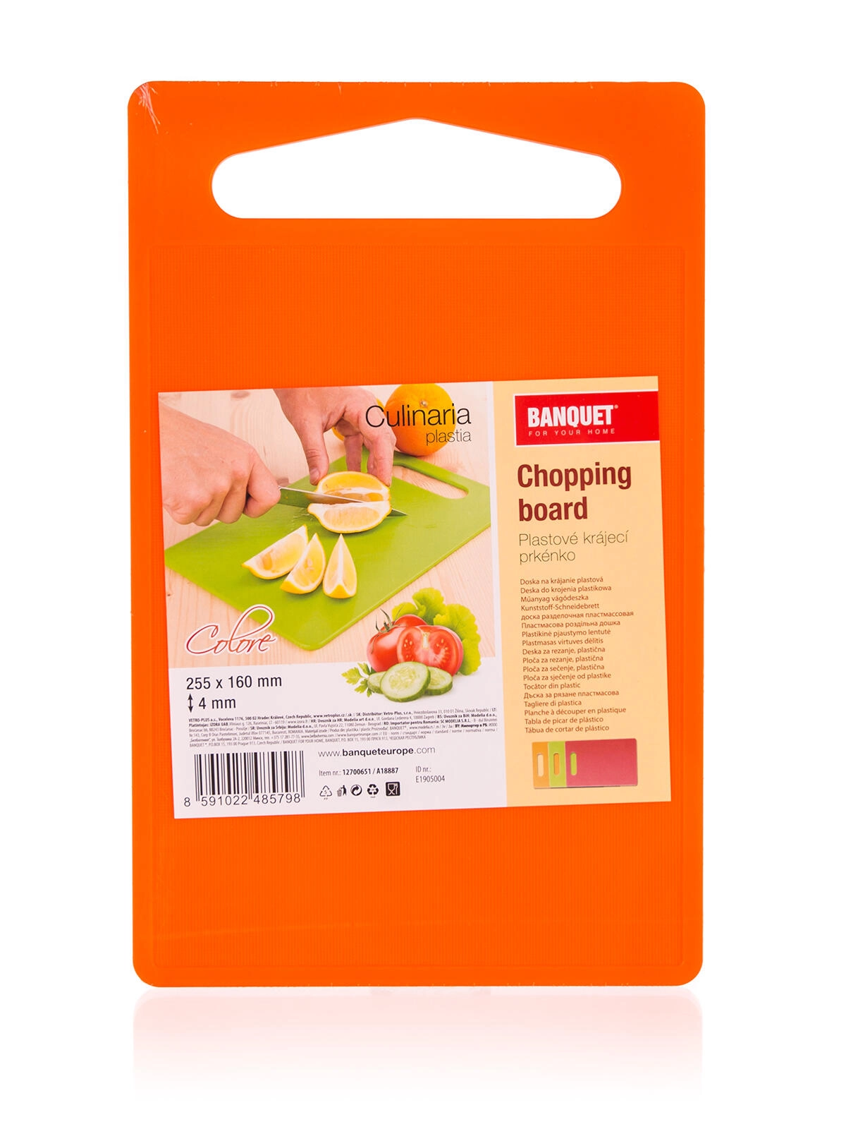 Praktische snijplank van duurzaam polypropyleen in een compact formaat van 25,5 × 16 cm, ideaal voor dagelijks gebruik. Biedt eenvoudig onderhoud, is geschikt voor de vaatwasser en is verkrijgbaar in een mix van kleuren om bij je keuken te passen.