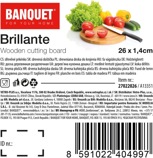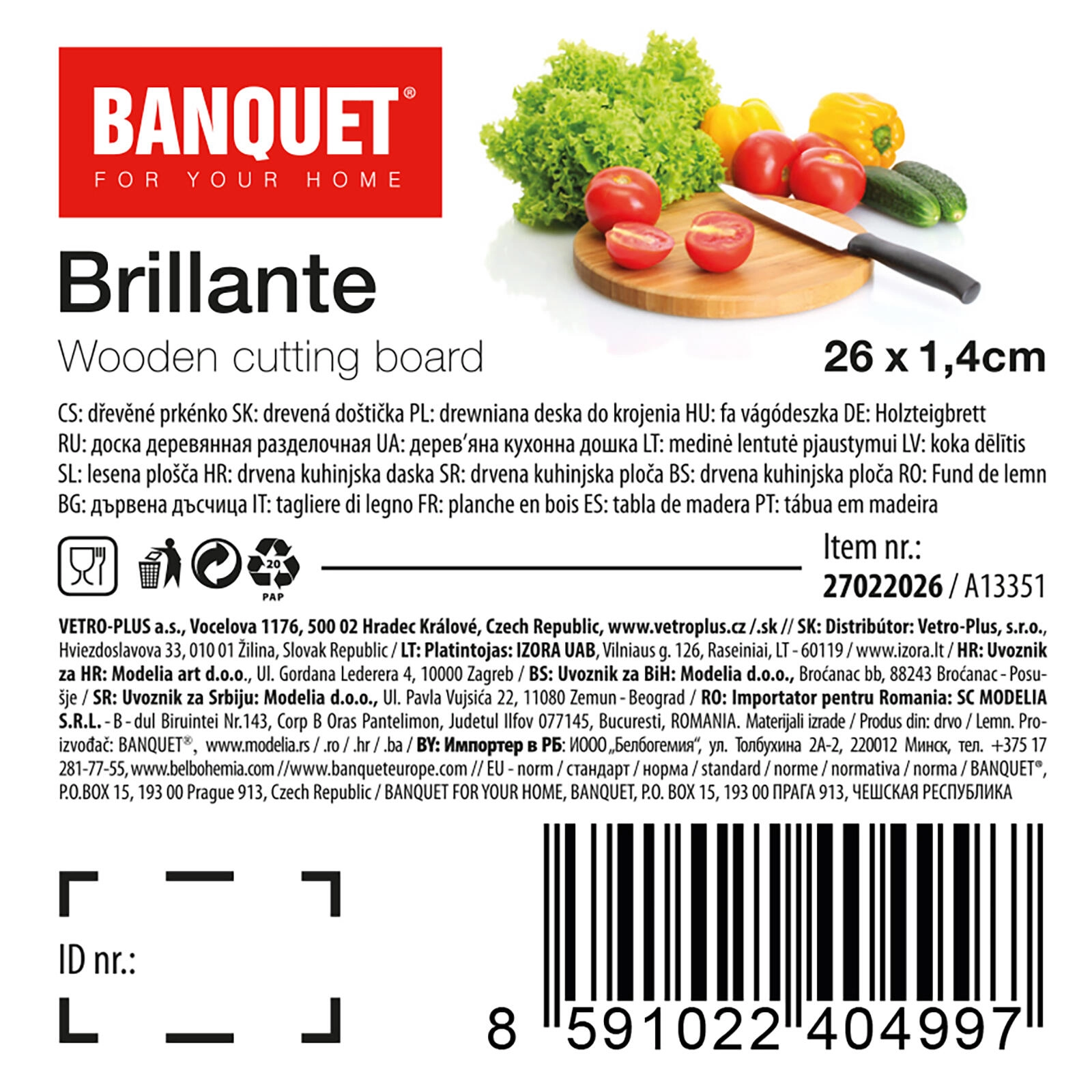 Deze ronde snijplank BRILLANTE is gemaakt van hoogwaardig berkenhout. Dankzij de randgeul worden sappen van fruit, groenten of vlees opgevangen en blijft uw werkblad schoon. De diameter van 26 cm biedt voldoende ruimte voor bereiding en stijlvol serveren van kazen, vleeswaren of brood.
