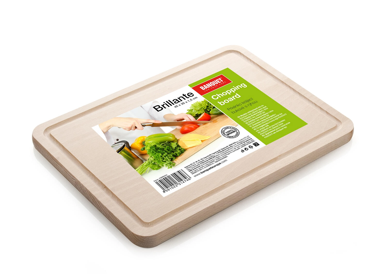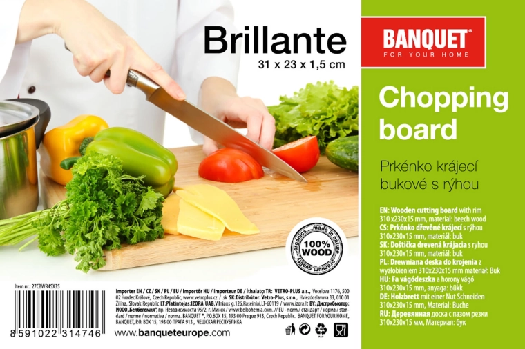 Ontdek de betrouwbare BRILLANTE snijplank van beukenhout. Dankzij de rondomlopende groef worden sappen van vlees, fruit en groenten opgevangen, zodat het werkblad schoon blijft. Het natuurlijke beukenhout in natur-afwerking geeft de plank stevigheid, een lange levensduur en een elegant uiterlijk voor elke keuken.