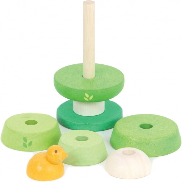 Ontdek een kwaliteitsvol stapelspeelgoed in de vorm van een boom met een schattig vogeltje bovenop. Onderdelen in verschillende groentinten motiveren kinderen om kleuren en vormen te onderscheiden, terwijl de stabiele basis zorgt voor veilig spel. Dankzij de flexibele staaf is stapelen comfortabel en zacht, zelfs voor de kleinste handjes.