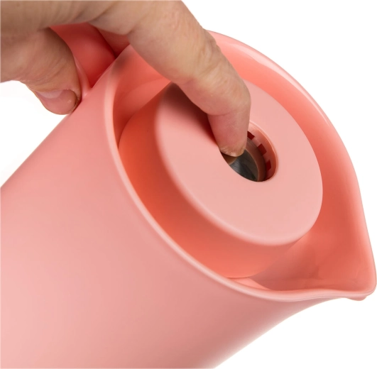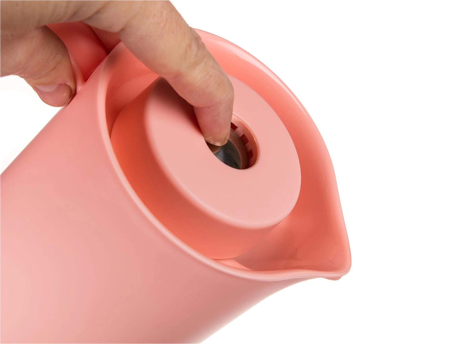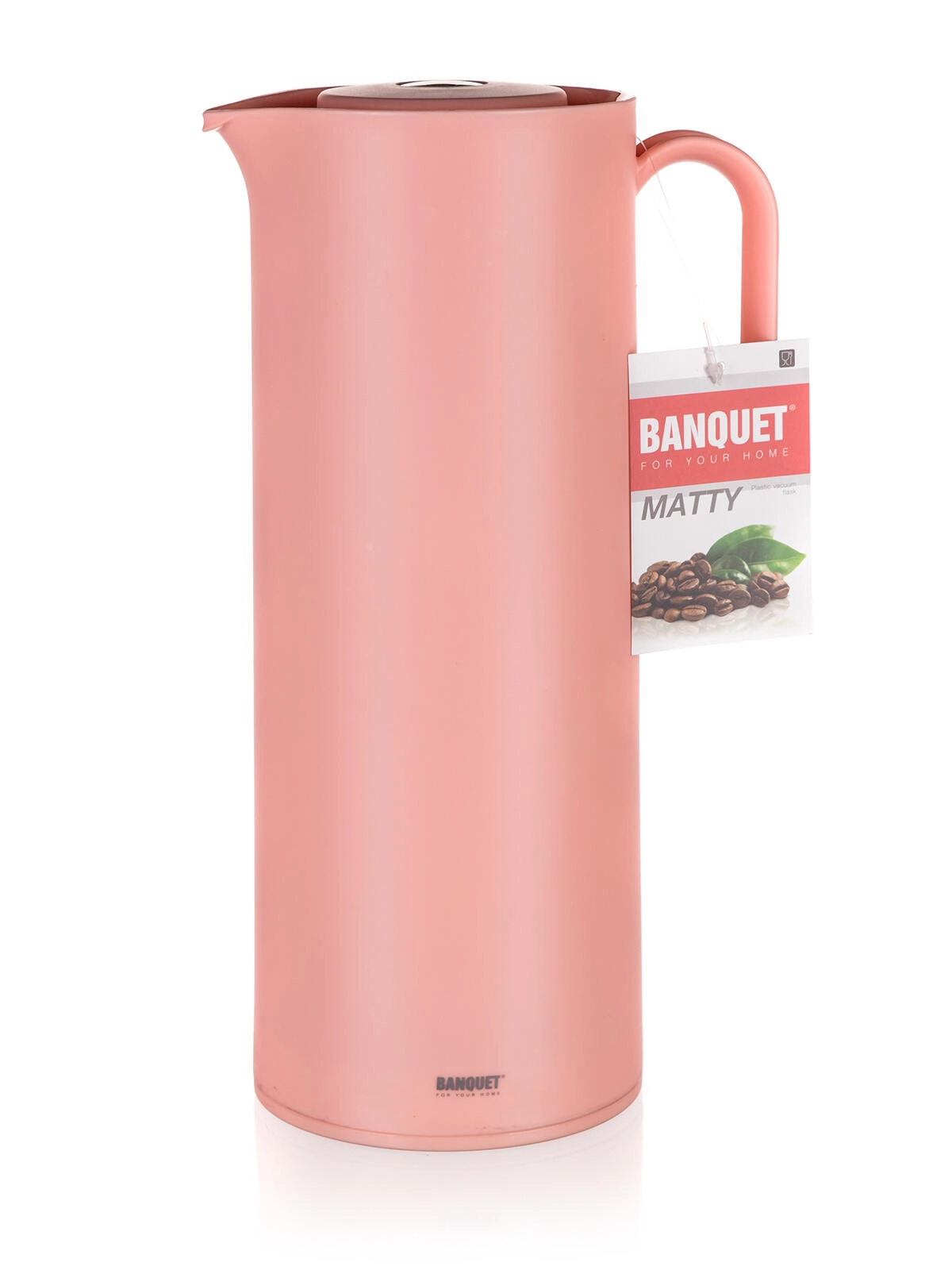 De stijlvolle roze thermoskan BANQUET Matty met een inhoud van 1 l houdt je dranken lang warm of koud. Hij heeft een glazen thermische inzet, een duurzaam kunststof lichaam en een praktisch deksel voor comfortabel schenken zonder morsen. Ideaal voor op kantoor, thuis en bij het serveren van bezoek.