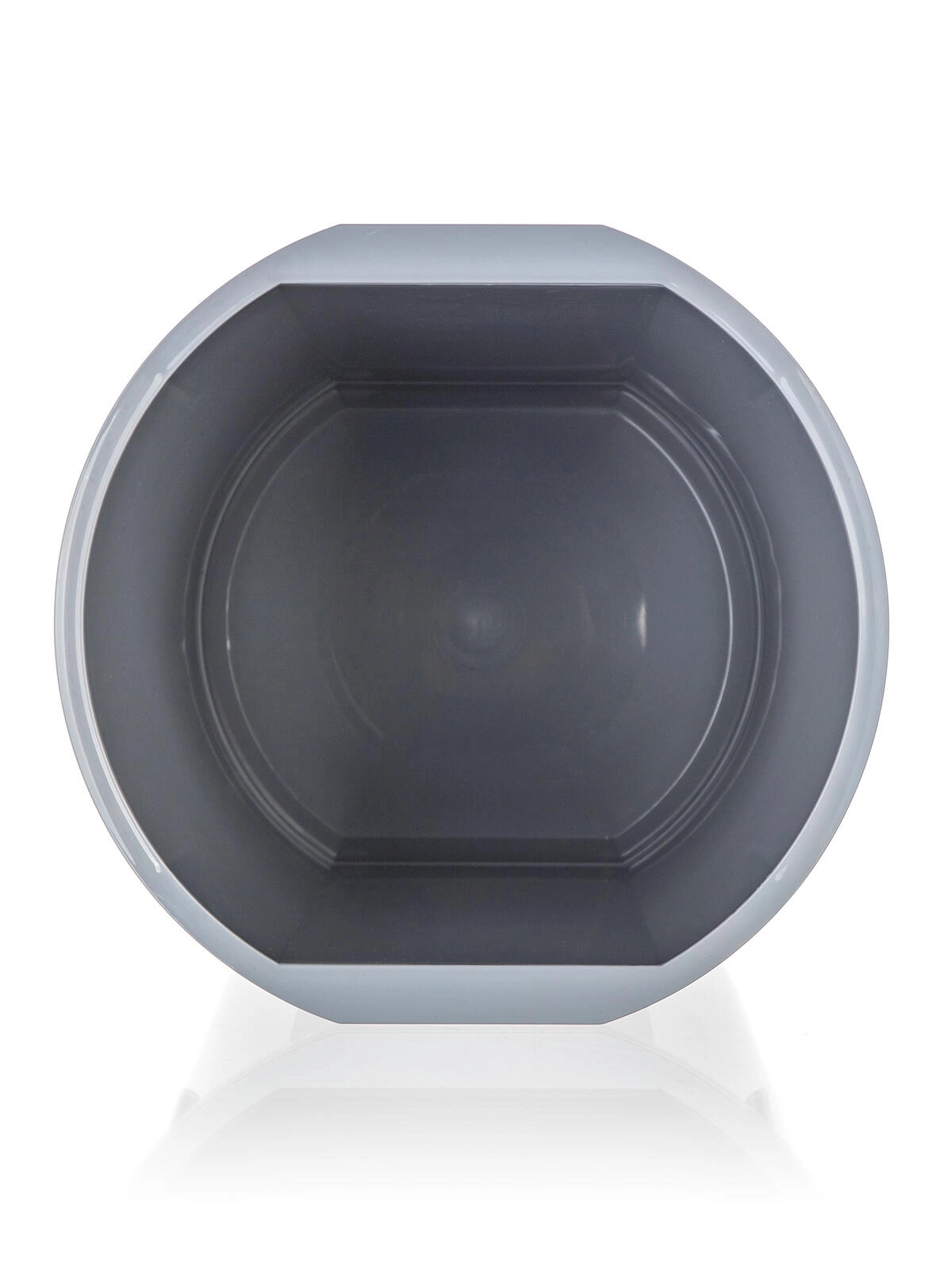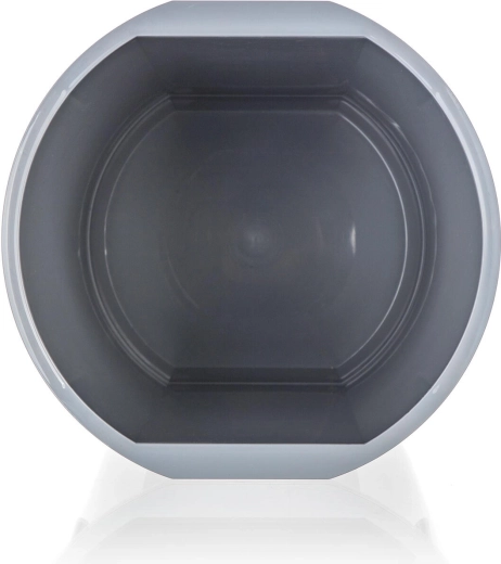 Het ronde ontwerp past gemakkelijk in de badkamer, kitchenette of het kantoor en de ingetogen grijze kleur past bij het interieur.