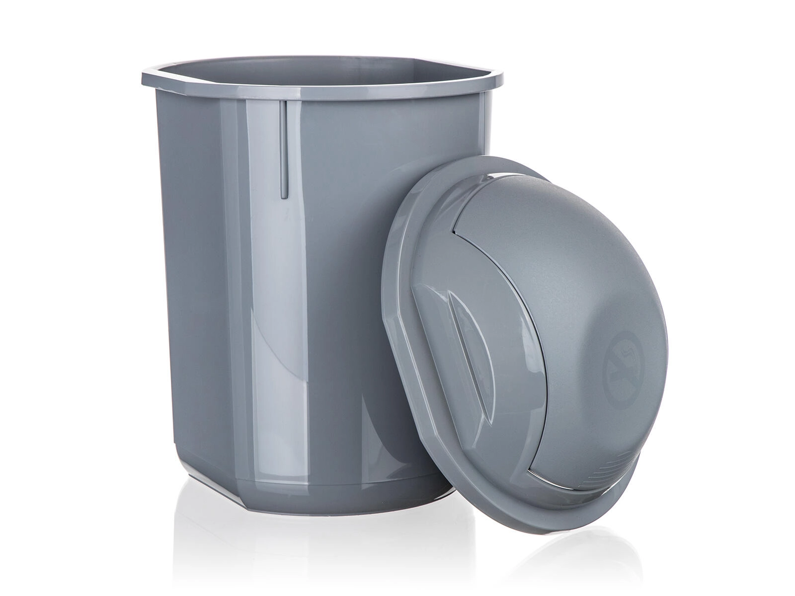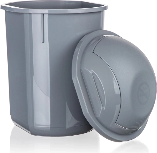 De praktische prullenbak met kanteldeksel en een inhoud van 8 liter biedt een strak design en een functionele sluiting, waarmee snel en hygiënisch weggooien mogelijk is zonder onnodig contact. Dankzij de compacte afmetingen past hij ook in kleinere ruimtes en de grijze kleur combineert moeiteloos met elk interieur.