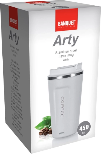 Stijlvolle dubbelwandige reis-thermobeker Arty met een inhoud van 450 ml houdt je drankjes langer warm én koud dankzij het vacuümlichaam. Hij is duurzaam uitgevoerd in roestvrij staal 201/304, heeft comfortabele afmetingen voor in de hand en in de meeste bekerhouders in de auto en een praktisch deksel voor dagelijks gebruik. Ideaal voor op het werk, in de auto en onderweg.