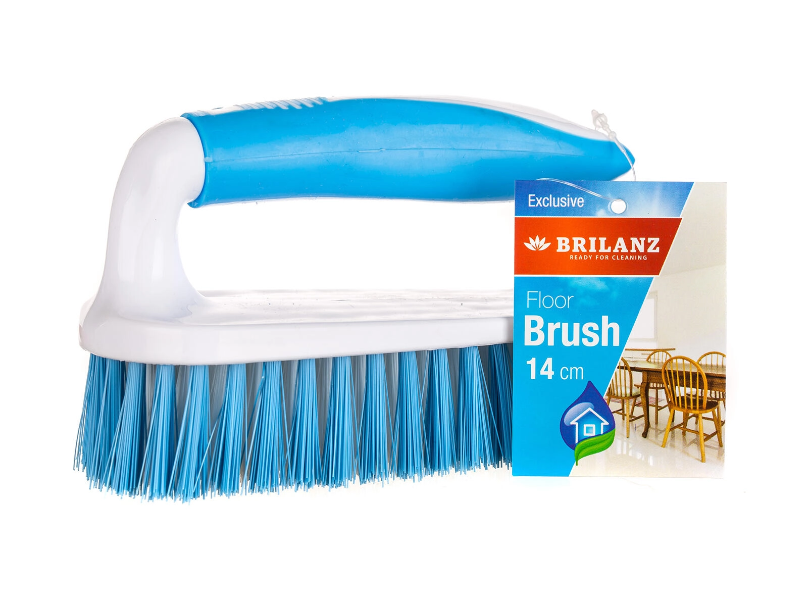 Compacte handborstel voor vloeren met ergonomisch zachte TPR-handgreep voor comfortabel vasthouden en dichte, duurzame haren voor effectief schrobben. Ideaal voor het reinigen van tegels, voegen en hardnekkig vuil in huis. Praktisch formaat 14 × 6 × 9 cm en blauw-witte uitvoering voor een moderne uitstraling.