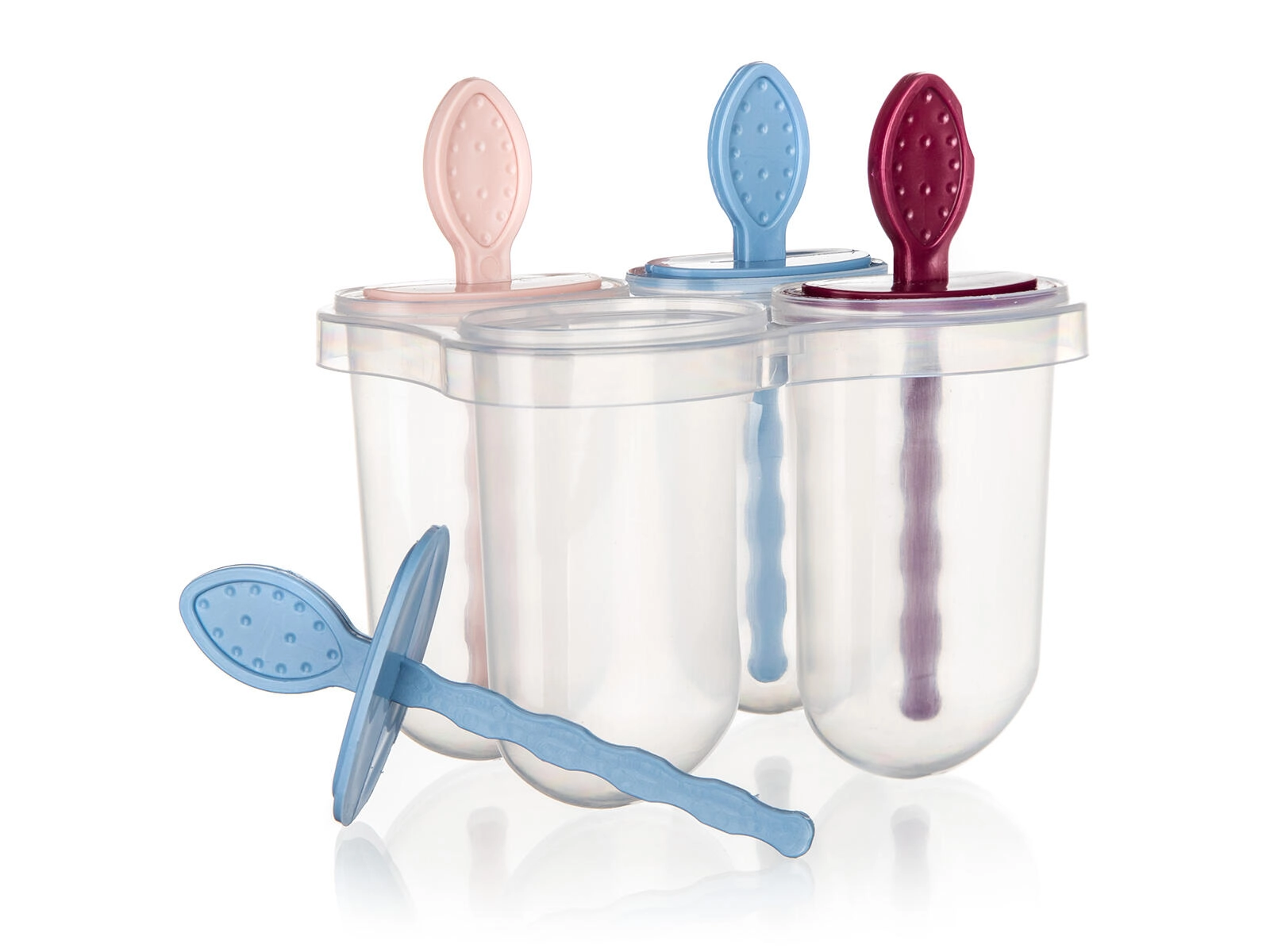 Transparante vormen maken het eenvoudig om het vulniveau te zien en na kort afspoelen met lauwwarm water laat de ijslolly zich gemakkelijk uitnemen.