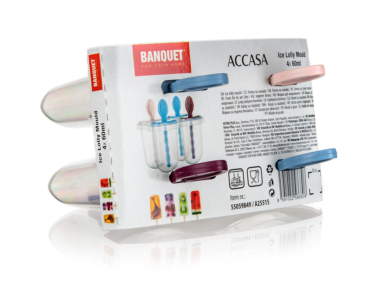 De vormen hebben compacte afmetingen van 12,5 × 8,5 × 12,5 cm en een inhoud van 60 ml per ijsje – ideaal voor snelle zomerverfrissing. Voor makkelijker lossen spoel je de vorm kort af met lauwwarm water voordat je het stokje eruit trekt. Het onderhoud is eenvoudig – de hele set is vaatwasmachinebestendig.