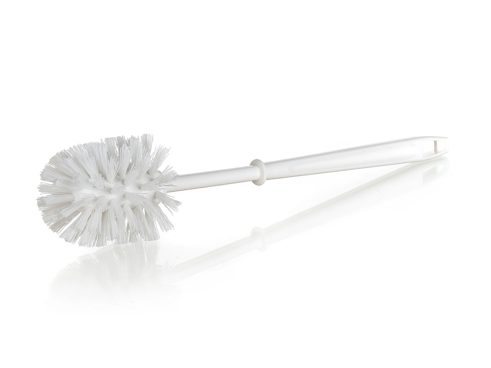 Praktische WC-borstel voor dagelijks toiletonderhoud. Dankzij de compacte afmetingen en het duurzame kunststof ontwerp zorgt hij voor effectieve reiniging van alle typen toiletten. Licht, duurzaam en eenvoudig te reinigen, in een universele witte kleur die in elke badkamer of toiletruimte past.
