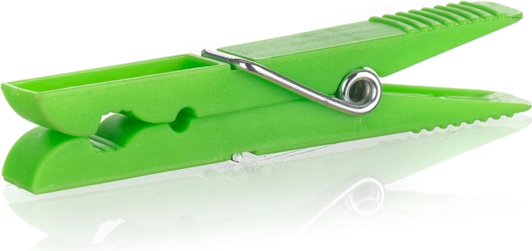 Geribbelde uiteinden en een stalen veer zorgen voor een zekere bevestiging op de waslijn, zelfs bij wind.