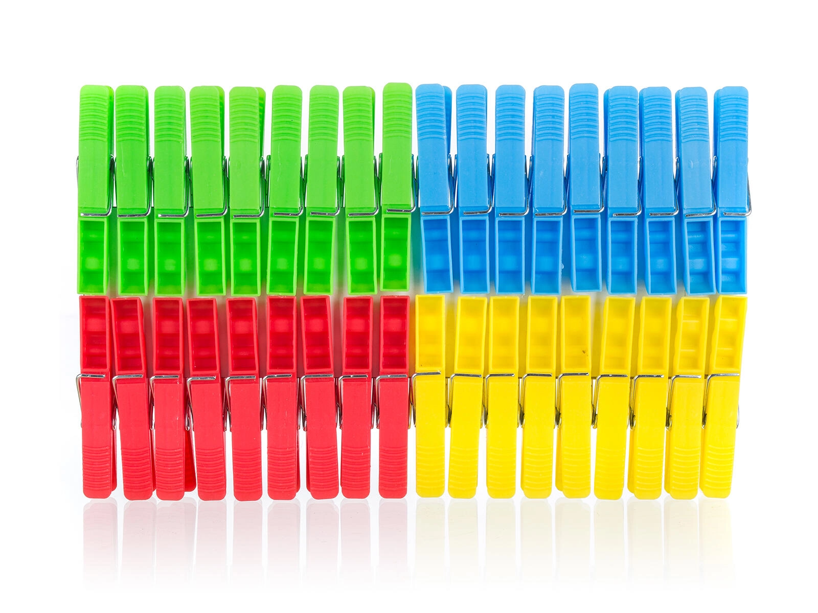 De praktische kleurenmix – geel, rood, blauw en groen – maakt ophangen en sorteren overzichtelijker. Dankzij de lichte maar stevige constructie zijn ze geschikt voor dagelijks gebruik en kunnen ze ook winderige omstandigheden aan.
