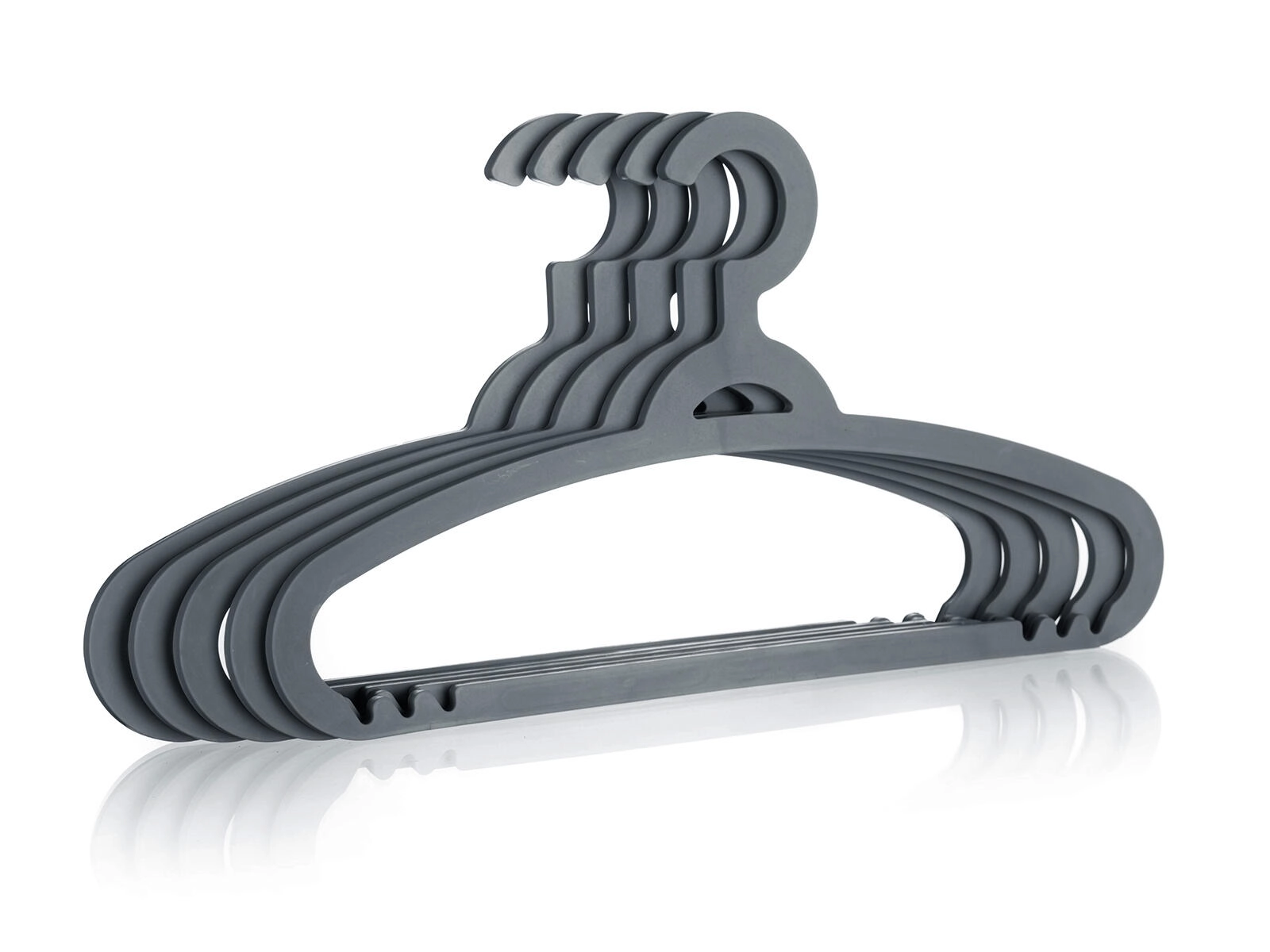 De moderne antracietkleur oogt elegant en past in ieder interieur. De set van 5 stuks biedt een praktische en voordelige oplossing voor de organisatie van je garderobe.