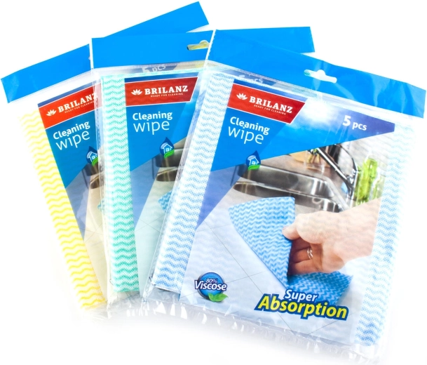 Praktische set zachte doeken BRILANZ van 40 × 40 cm, ideaal voor dagelijks schoonmaken. Dankzij de perforatie en het non-woven materiaal zijn de doeken zeer absorberend, sneldrogend en scheurvast. Perfect voor keuken, badkamer en algemeen huishoudelijk gebruik.