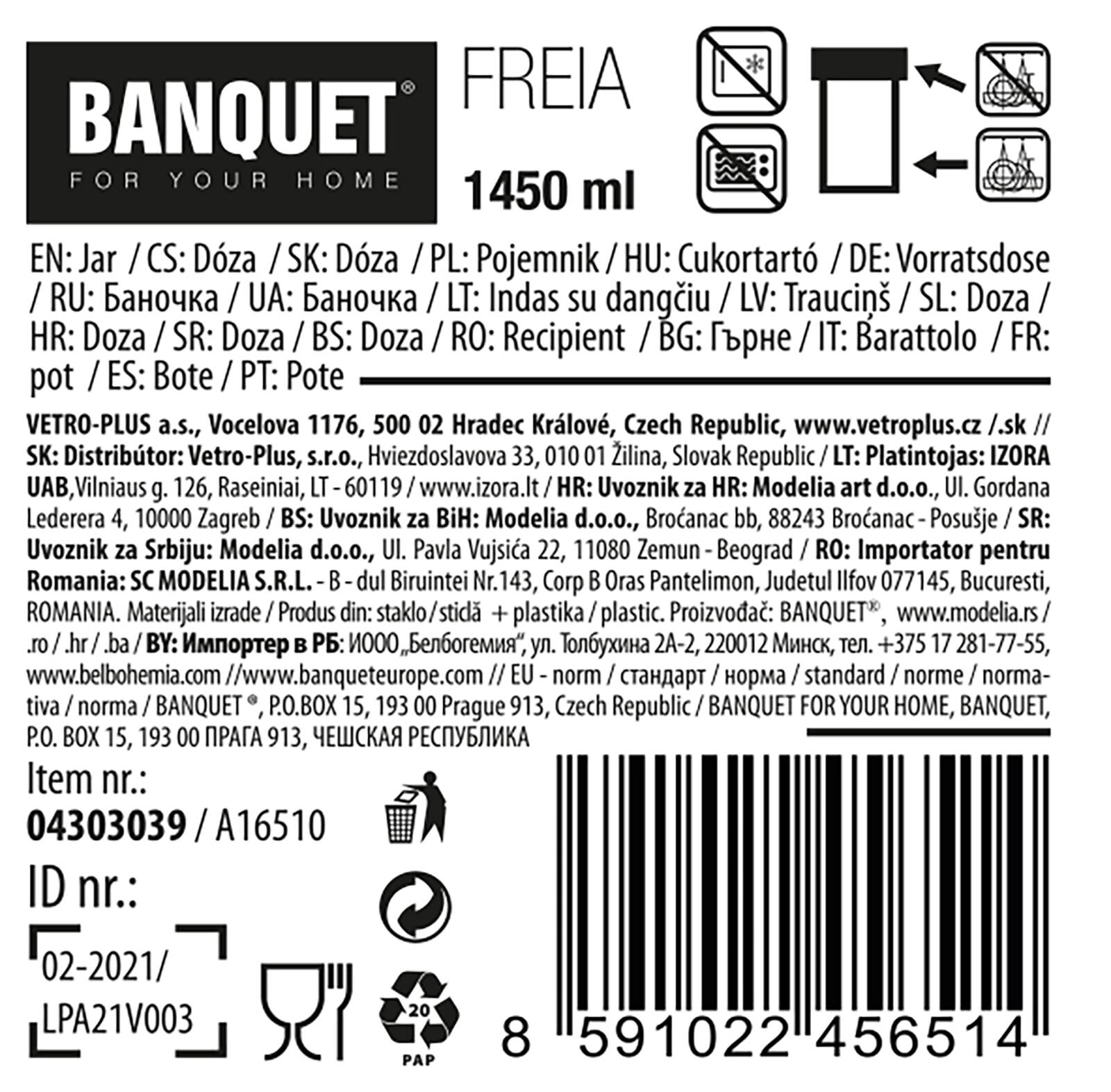 • Inhoud 1,45 l – perfecte maat voor de dagelijkse voorraad.