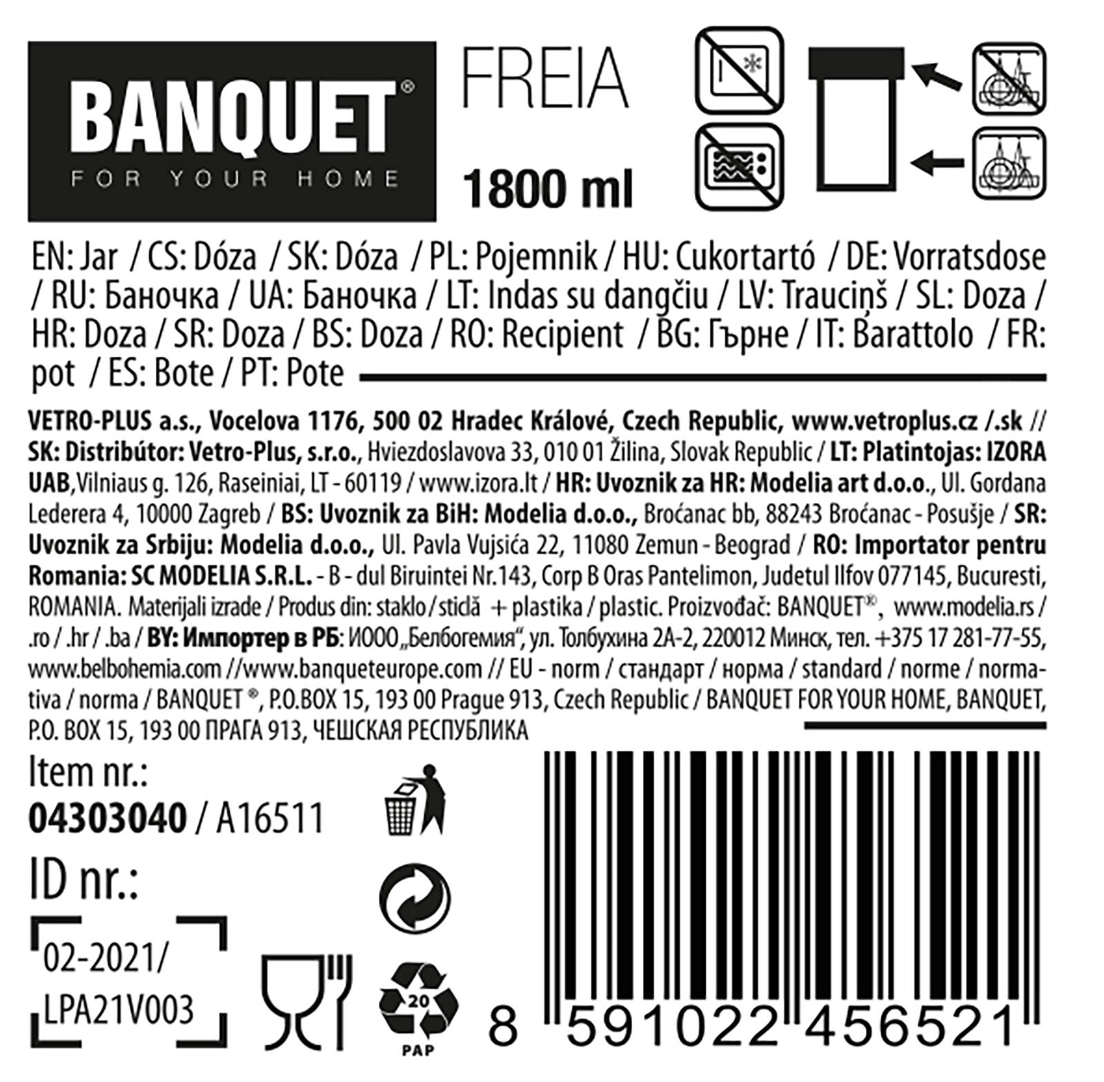 Praktische glazen voorraadpot FREIA met een inhoud van 1,8 l en een elegant roestvrijstalen deksel, ideaal voor het bewaren van etenswaren. Dankzij het heldere glas heb je de inhoud altijd in het zicht en het deksel helpt de versheid, smaak en aroma van de opgeslagen ingrediënten te behouden.