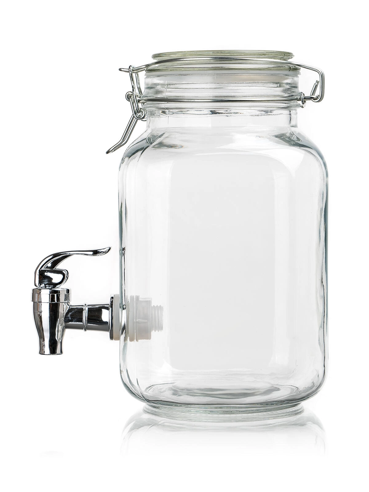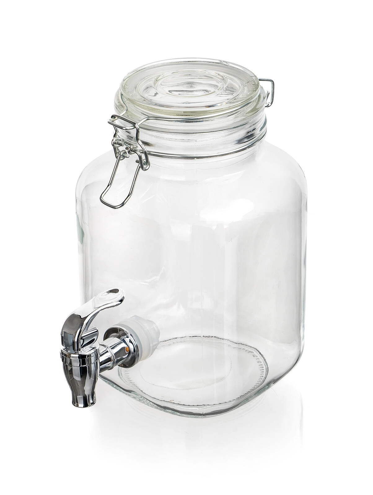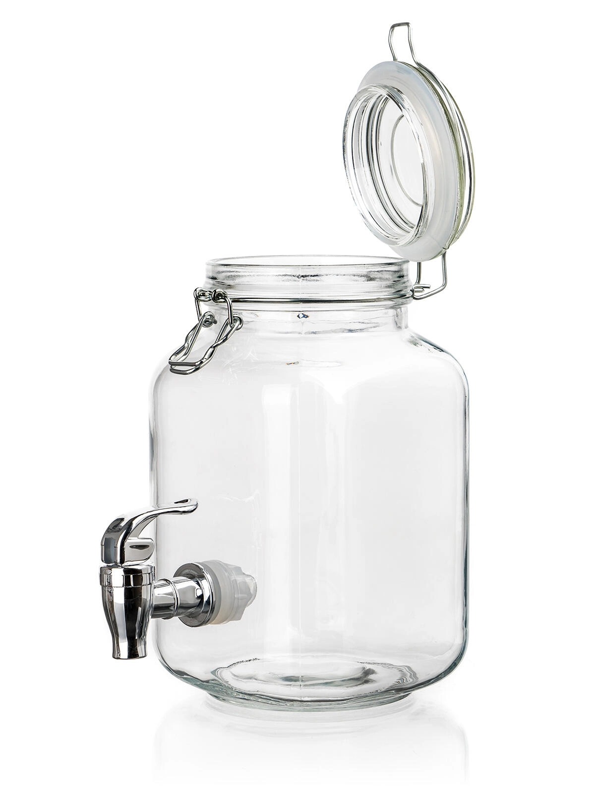 Het beugeldeksel met afdichting beschermt de inhoud tegen uitdroging en vuil, terwijl de metalen kraan zorgt voor soepel en gecontroleerd schenken zonder druppels. De brede hals maakt handig vullen, reinigen en het toevoegen van ijs, citrus of kruiden mogelijk voor de perfecte verfrissing.