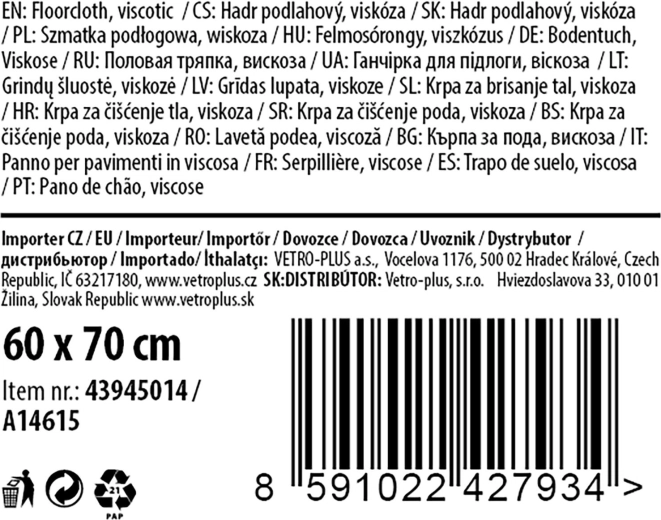 Deze universele vloerdweil is ideaal voor dagelijks schoonmaken in huis en op kantoor. Dankzij het viscose materiaal neemt hij uitstekend water en vuil op, waardoor dweilen snel en moeiteloos gaat. Het formaat van 60 × 70 cm biedt voldoende oppervlak voor efficiënt werken.
