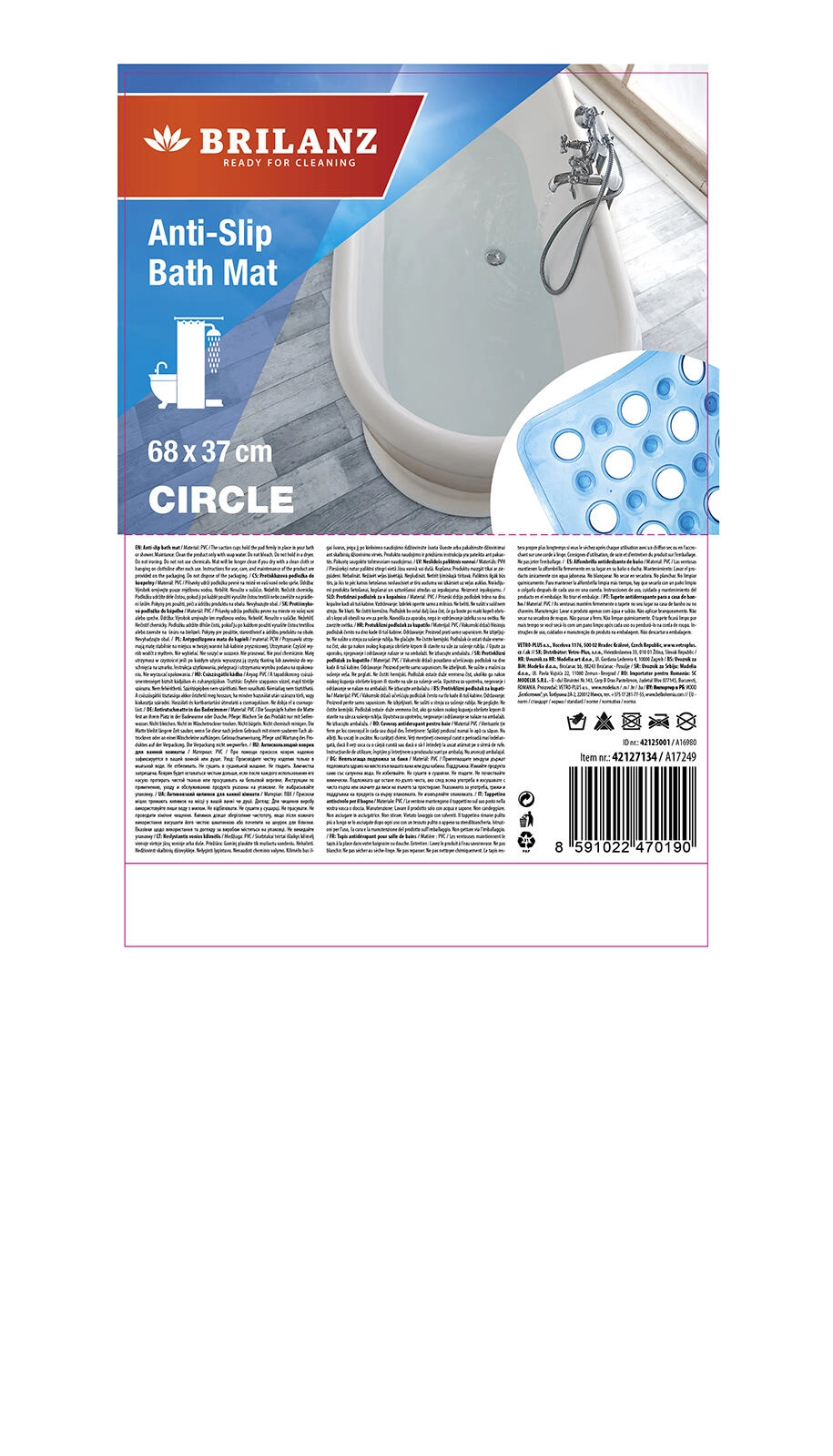 De praktische antislip badmat CIRCLE met afmetingen 68 × 37 cm zorgt voor meer veiligheid in bad en op natte oppervlakken. Dankzij de hoogwaardige zuignappen blijft hij stevig op zijn plaats en het tijdloze design past in elke badkamer. Antislip oppervlak, betrouwbare hechting en eenvoudig onderhoud voor dagelijks comfort.