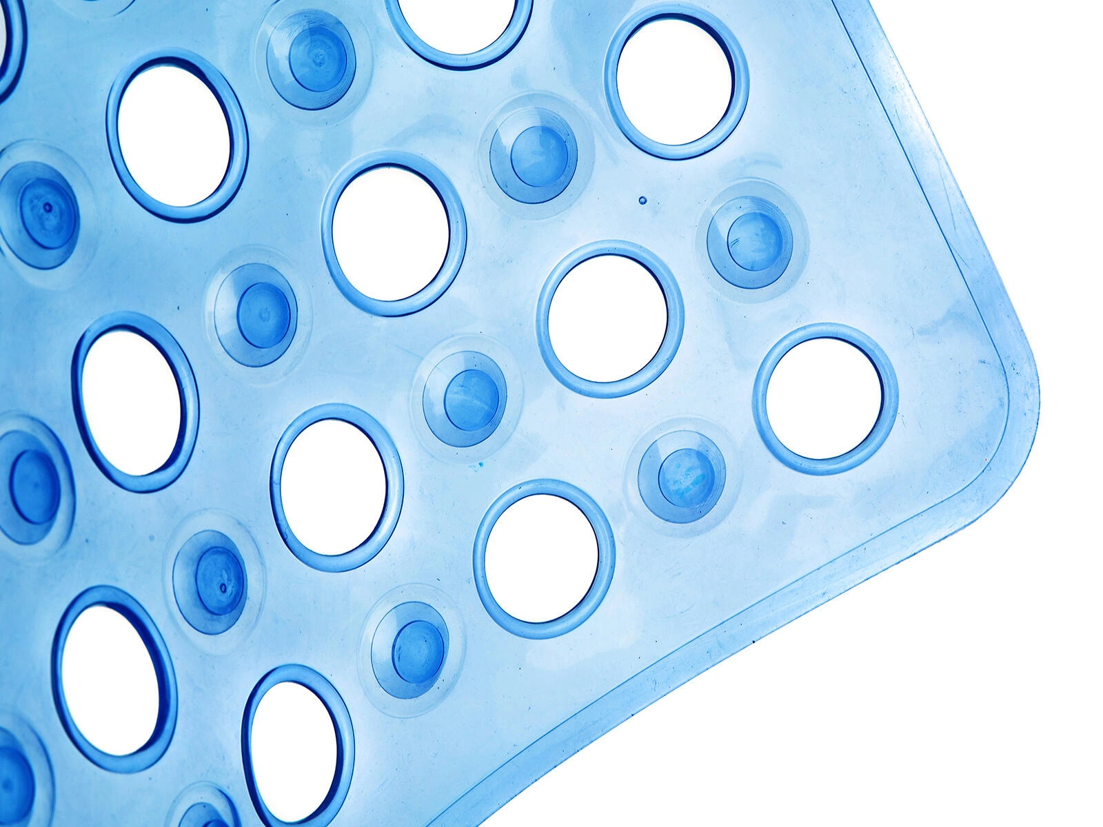 Geniet van comfortabel en veilig douchen met de CIRCLE badmat in transparant blauw. De dichte zuignappen aan de onderzijde zorgen voor een stabiele grip op het badoppervlak, terwijl de antislipstructuur het risico op uitglijden minimaliseert. Het subtiele transparante design laat zich gemakkelijk combineren met elke badkamerinrichting.