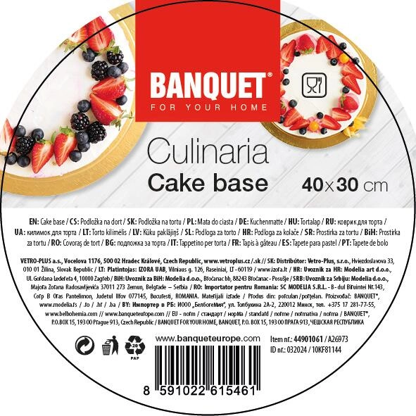 Te gebruiken bij het bewerken van taartbodems, het afwerken en decoreren en bij het serveren en vervoeren van afgewerkte taarten. Het duurzame oppervlak voorkomt dat vocht en vet intrekken, waardoor de onderlegger schoon en representatief blijft.