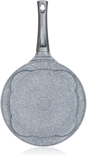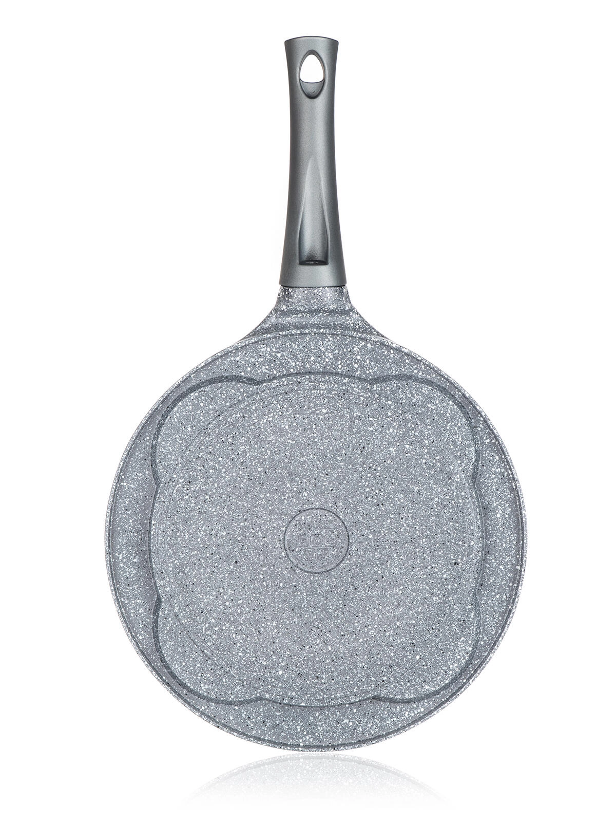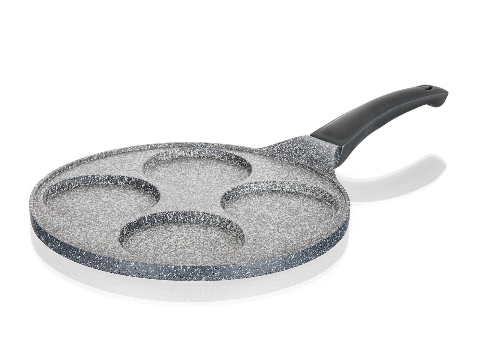 Praktische pannenkoekenpan met een diameter van 26 cm met GRANITE Grey oppervlak maakt het mogelijk om 4 perfect gevormde pannenkoeken, eieren of mini-omeletten te bereiden met een minimum aan vet. Dankzij de antiaanbaklaag, de inductiebodem en de ergonomische soft-touch handgreep is koken comfortabel en reinigen snel.