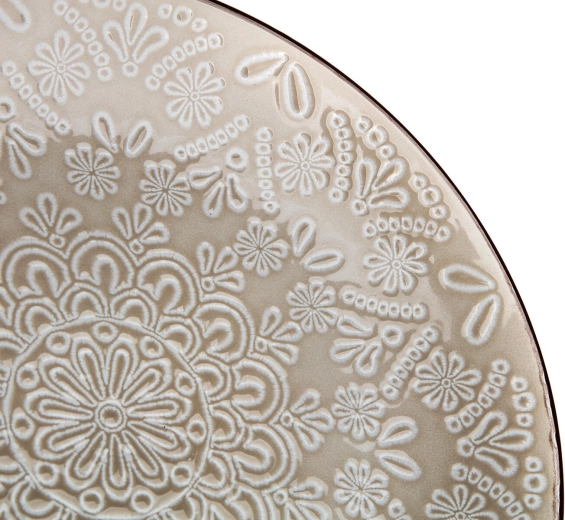 Met een diameter van 21,3 cm is het bord perfect voor desserts, taarten, voorgerechten en kleinere porties. Het gladde, geglazuurde oppervlak voelt prettig aan, het reliëf voegt textuur en elegantie toe en zorgt voor een veiliger grip. Voor maximaal gemak is het bord geschikt voor zowel magnetron als vaatwasser.