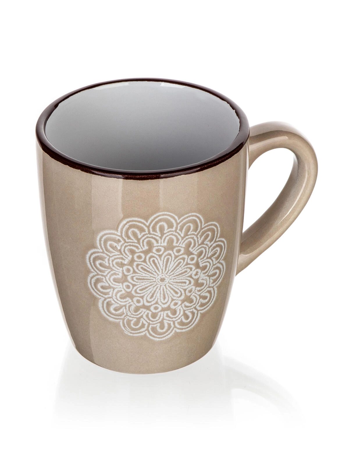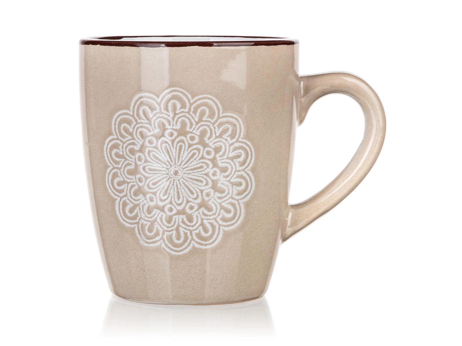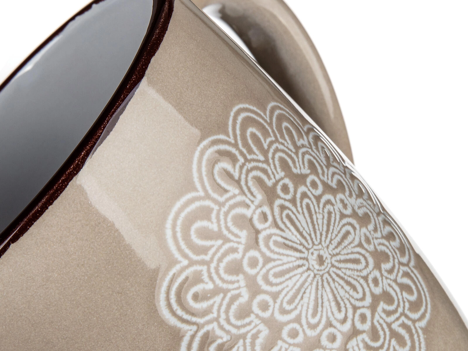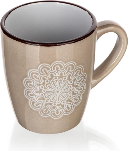 Ontdek een mok die subtiel design combineert met alledaags gebruiksgemak. De crèmekleur en het reliëf kant- (mandala) patroon geven je tafel een zachte elegantie, terwijl de inhoud van 400 ml ideaal is voor cappuccino, thee en kruidenthee.
