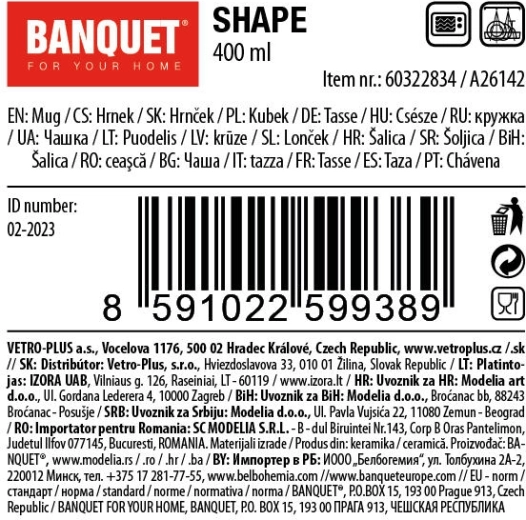 Elegante keramische mok SHAPE met een inhoud van 400 ml in crèmekleur met een subtiel kantreliëf, ideaal voor dagelijkse koffie of thee. Dankzij het ergonomische oor ligt hij comfortabel in de hand en de hoogwaardige glazuurlaag is eenvoudig te reinigen. Geschikt voor in de vaatwasser en de magnetron, dus een praktische en stijlvolle keuze voor je relaxmomenten.