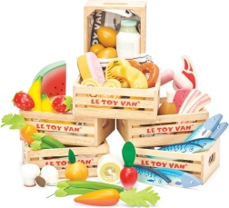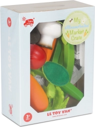 De set bevat 9 gedetailleerde groentestukken en een houten kist met het merkl logo. Het speelgoed maakt deel uit van de bekroonde Honeybake-collectie, die via imitatiespel cognitieve vaardigheden, sociale interactie en taalontwikkeling stimuleert.