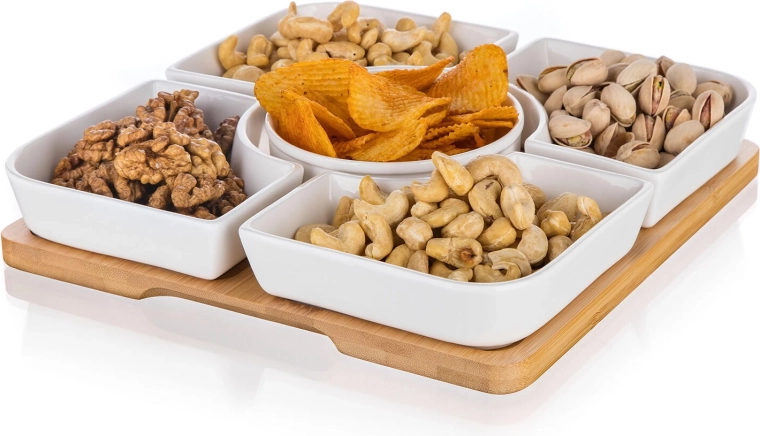 Geschikt voor noten, olijven, chips, gedroogd fruit of diverse sauzen en dips – één set dekt meerdere soorten hapjes tegelijk.