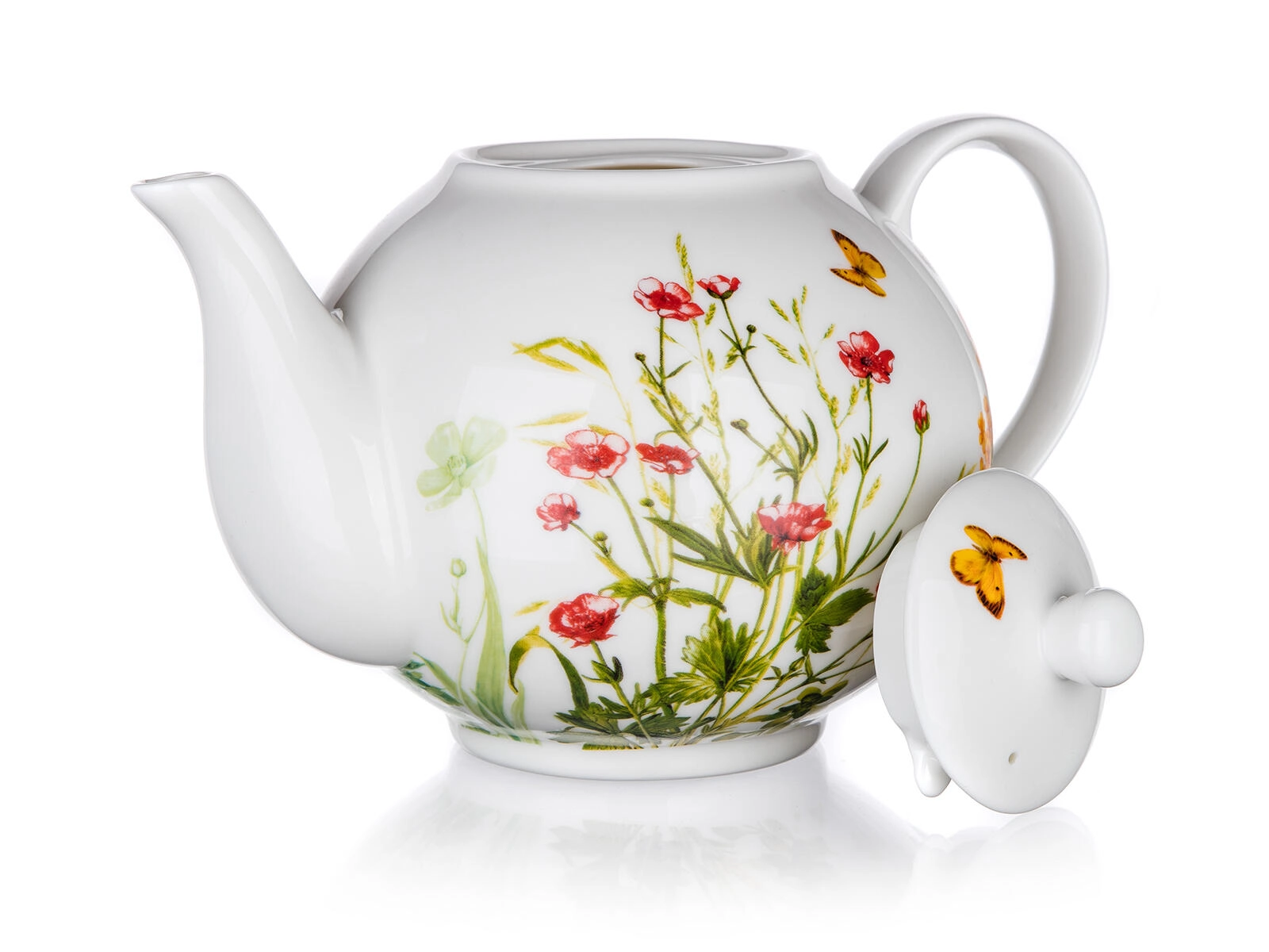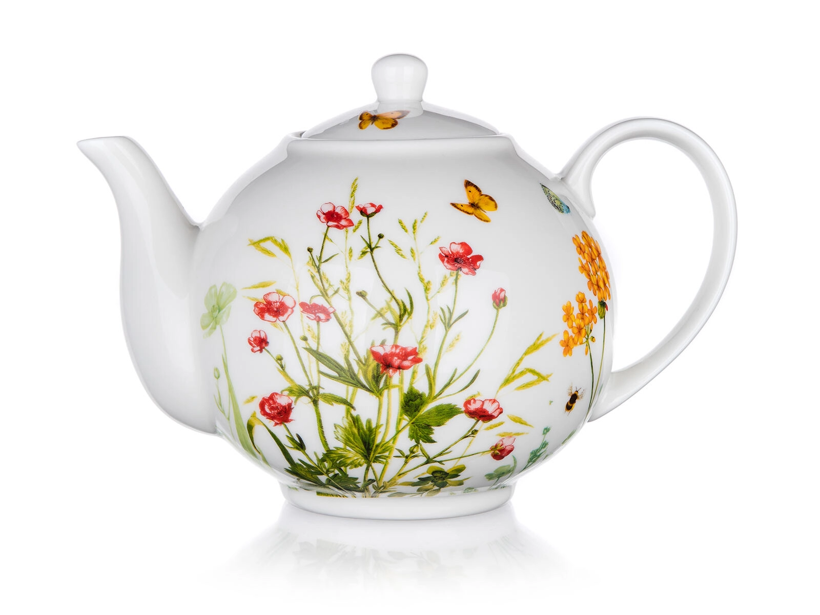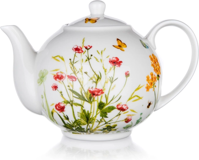 Ontdek de charme van serveren met de Meadow-theepot, die tijdloos design combineert met functionaliteit. De witte glazuur met decoratieve bloemen en vlinders oogt verfijnd en elegant, waardoor de pot zowel past bij de ochtendkoffie als bij de middagthee met vrienden.