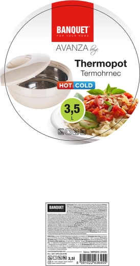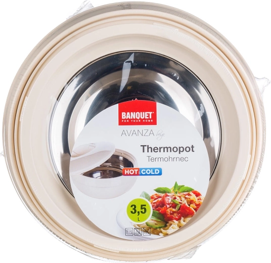 De thermoschaal AVANZA 3,5 l is een betrouwbare hulp voor het bewaren en serveren van bereide maaltijden. De robuuste kunststof buitenkant met PUR-isolatie en de roestvrijstalen binneninzet zorgen voor langdurig temperatuurbehoud en eenvoudig reinigen. Het praktische deksel beschermt de inhoud en maakt veilig meenemen gemakkelijk.