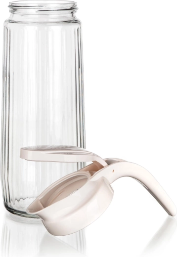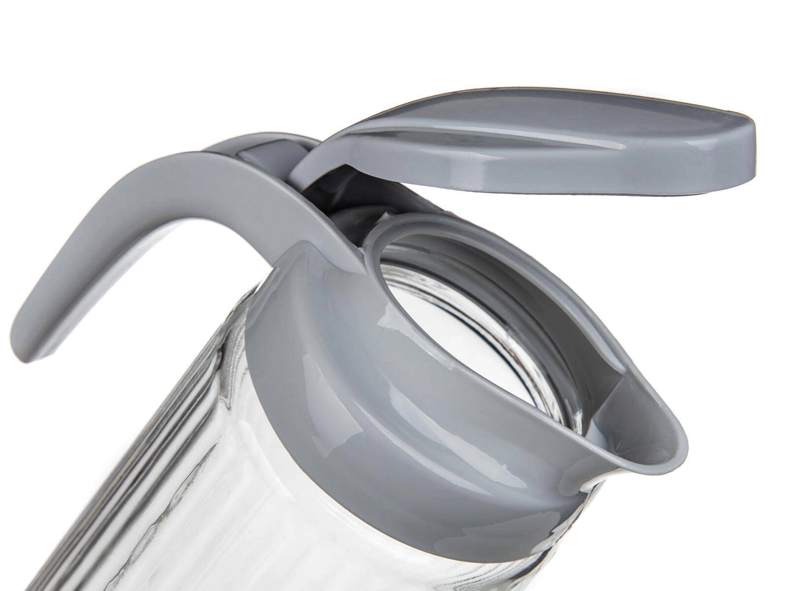 Transparant glas laat je het volume en de samenstelling van de drank gemakkelijk volgen, terwijl de ergonomische handgreep een stabiele grip garandeert, ook wanneer de kan vol is. Dankzij de neutrale dekselkleurvarianten – beige en grijs – past de kan in zowel moderne als klassieke interieurs.