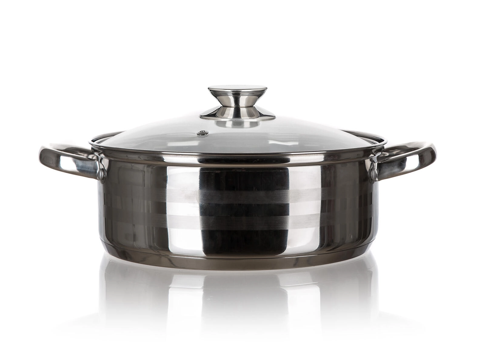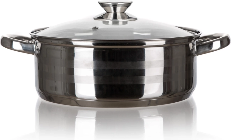 De roestvrijstalen pan LIVING met een inhoud van 3,9 l is een veelzijdige keuze voor elke keuken. Dankzij het glazen deksel hebt u het kookproces altijd onder controle en de roestvrijstalen constructie zorgt voor een lange levensduur en eenvoudig onderhoud. Het glanzende oppervlak met decoratieve matte strepen geeft uw keuken een elegante uitstraling.