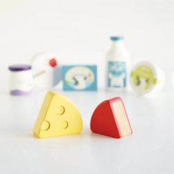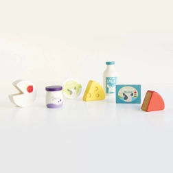 Deze houten krat met zuivelproducten van het merk Le Toy Van is ideaal voor kinderen die graag winkeltje of keukentje spelen. De set bevat een fles melk, boter, yoghurt, room en drie soorten kaas, elk artikel is ontworpen om er realistisch uit te zien. Deze speelgoedjes zijn niet alleen leuk, maar ook educatief, omdat ze kinderen helpen de belang van een uitgebalanceerd dieet te begrijpen.