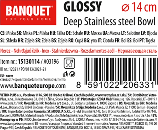 De roestvrijstalen kom Glossy met een diameter van 14 cm is een veelzijdige hulp bij koken, bakken en serveren. Het gladde oppervlak is gemakkelijk schoon te maken, rvs is hygiënisch en bestand tegen geuren en verkleuring. De diepe uitvoering voorkomt spatten en verhoogt het comfort bij roeren of marineren.