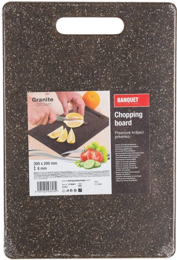 De polypropyleen plank met granietlook is licht, stevig en krasbestendig. Ideaal voor een drukke thuiskeuken.