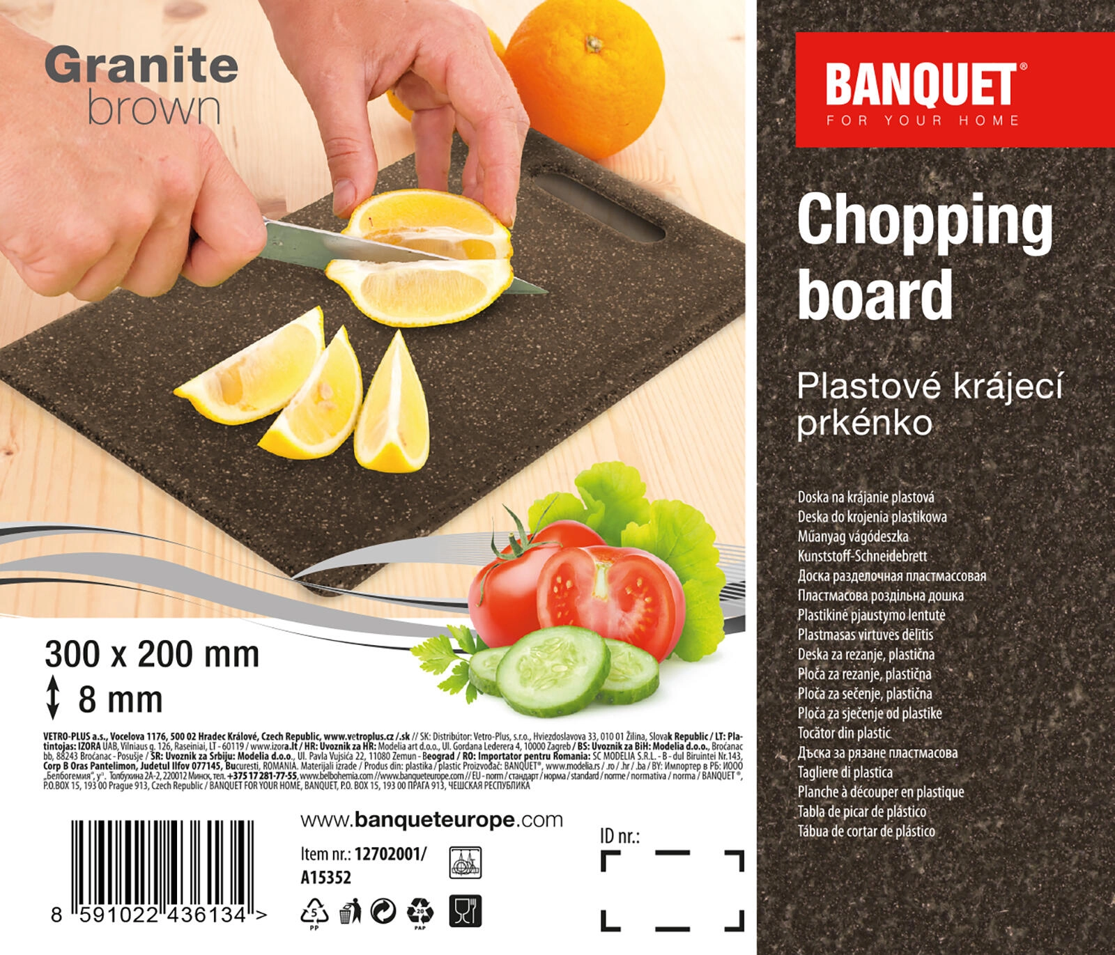 De duurzame snijplank GRANITE van 30 × 20 cm is ideaal voor dagelijks gebruik in de keuken. Biedt een stevig, messenvriendelijk oppervlak, eenvoudig onderhoud en een praktisch oogje om op te hangen. Geschikt voor stalen en keramische messen en vaatwasserbestendig.