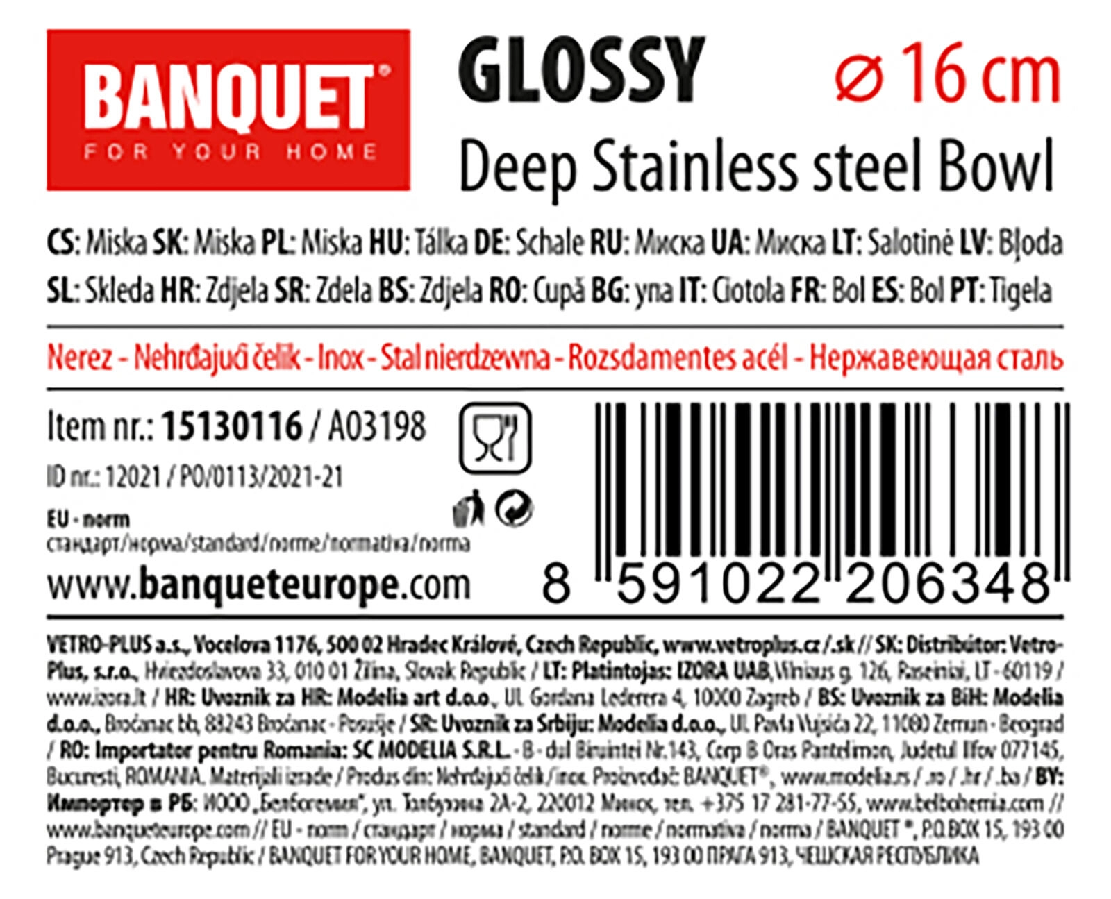 De roestvrijstalen kom Glossy met een diameter van 16 cm is ideaal voor voorbereiding en serveren. Dankzij de diepe vorm is ze geschikt voor het mengen van salades, kloppen, het serveren van bijgerechten en het bewaren van ingrediënten. Hoogwaardig roestvrij staal zorgt voor een lange levensduur en eenvoudig onderhoud.