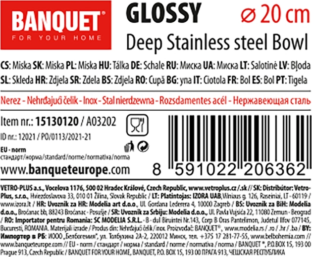 Praktische roestvrijstalen diepe kom Glossy 20 cm voor dagelijks gebruik in de keuken. Ze is duurzaam, hygiënisch, onderhoudsvriendelijk en geschikt voor de vaatwasser.