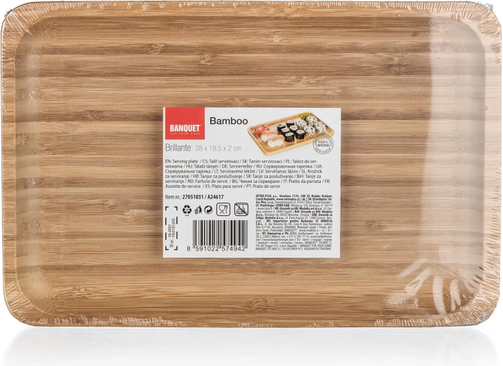 Het formaat 28 × 18,5 cm biedt voldoende ruimte voor diverse lekkernijen. Perfect voor het serveren van sushisets, kazen of zoete hapjes.