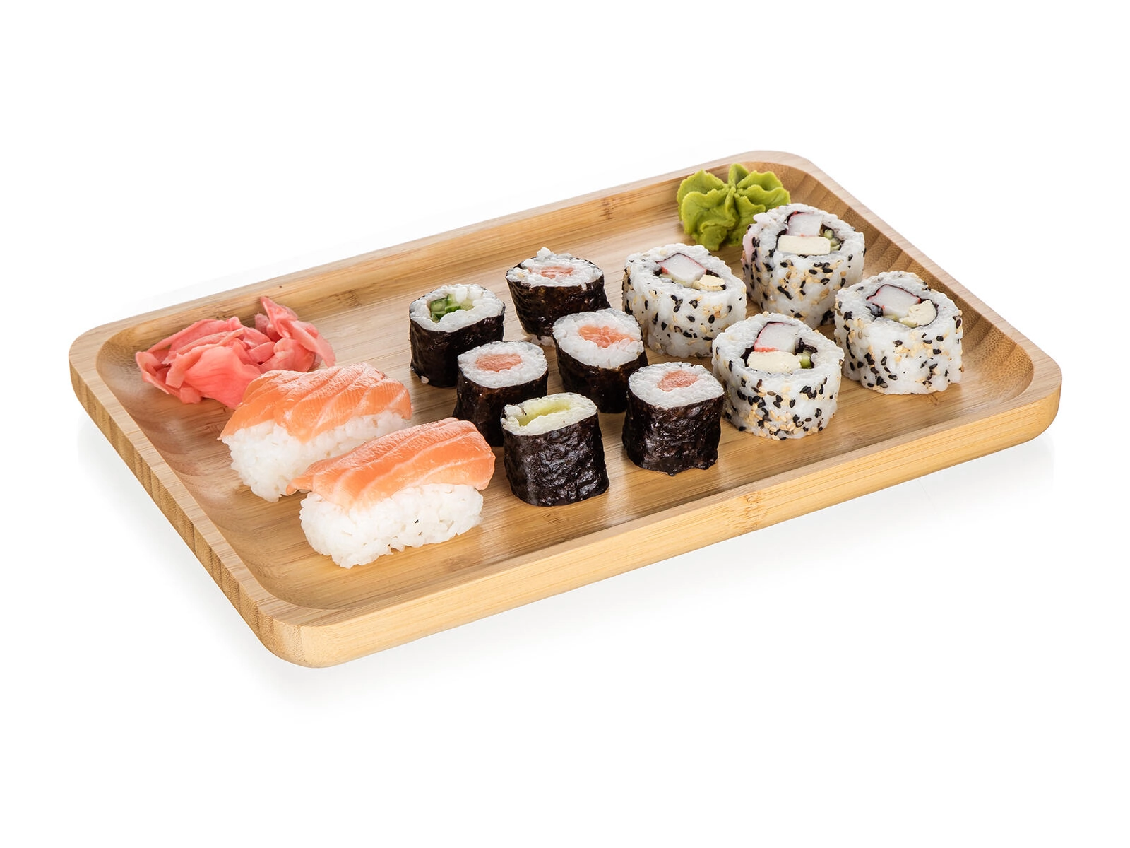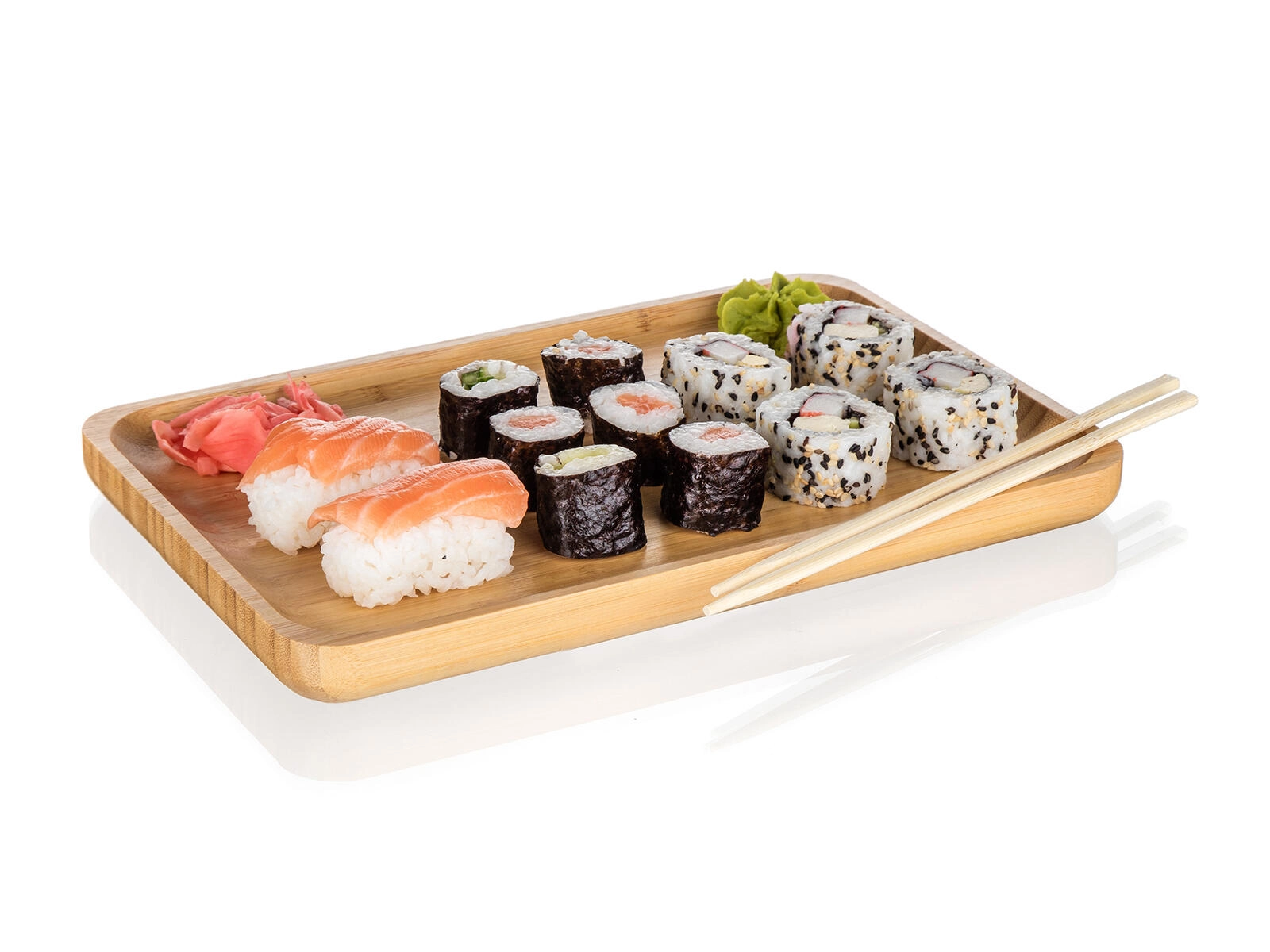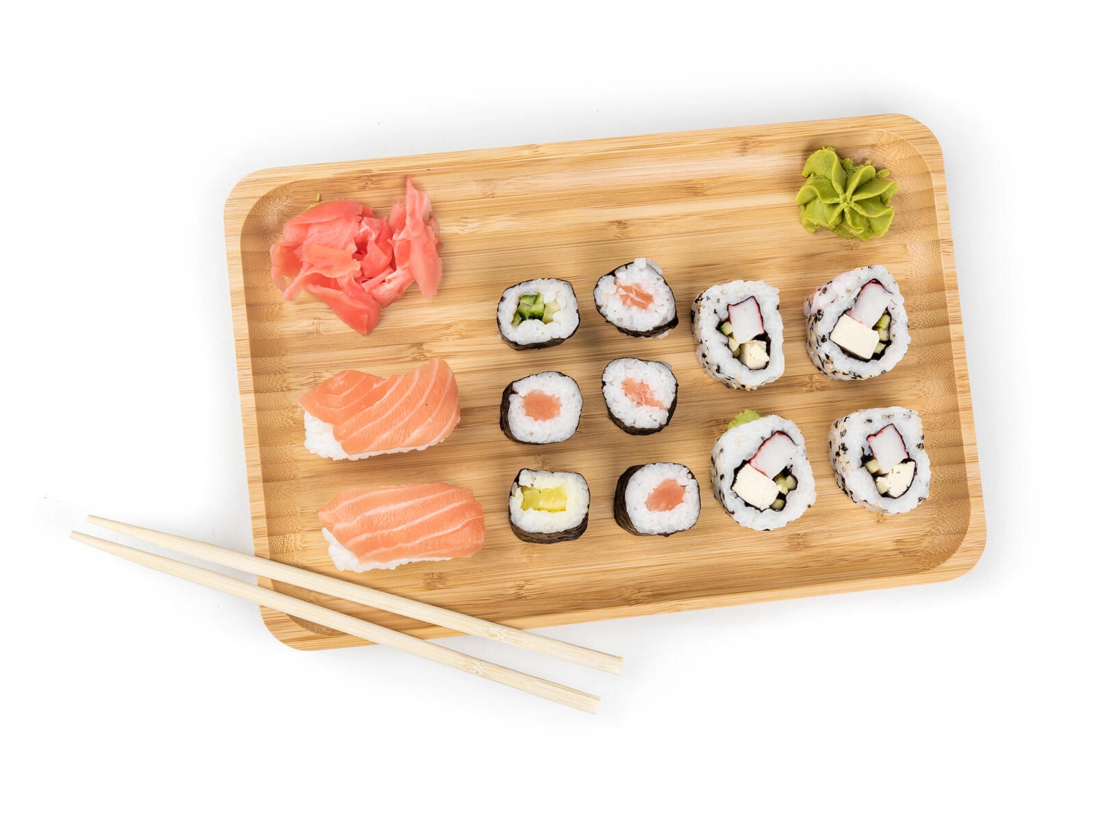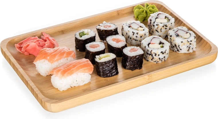 Geschikt voor sushi, hapjes, kaas, fruit of desserts en dankzij het minimalistische design past hij prachtig in zowel moderne als natuurlijk ingerichte interieurs. Het oppervlak is glad en accentueert subtiel de houtnerf, zodat je gerechten extra goed tot hun recht komen.