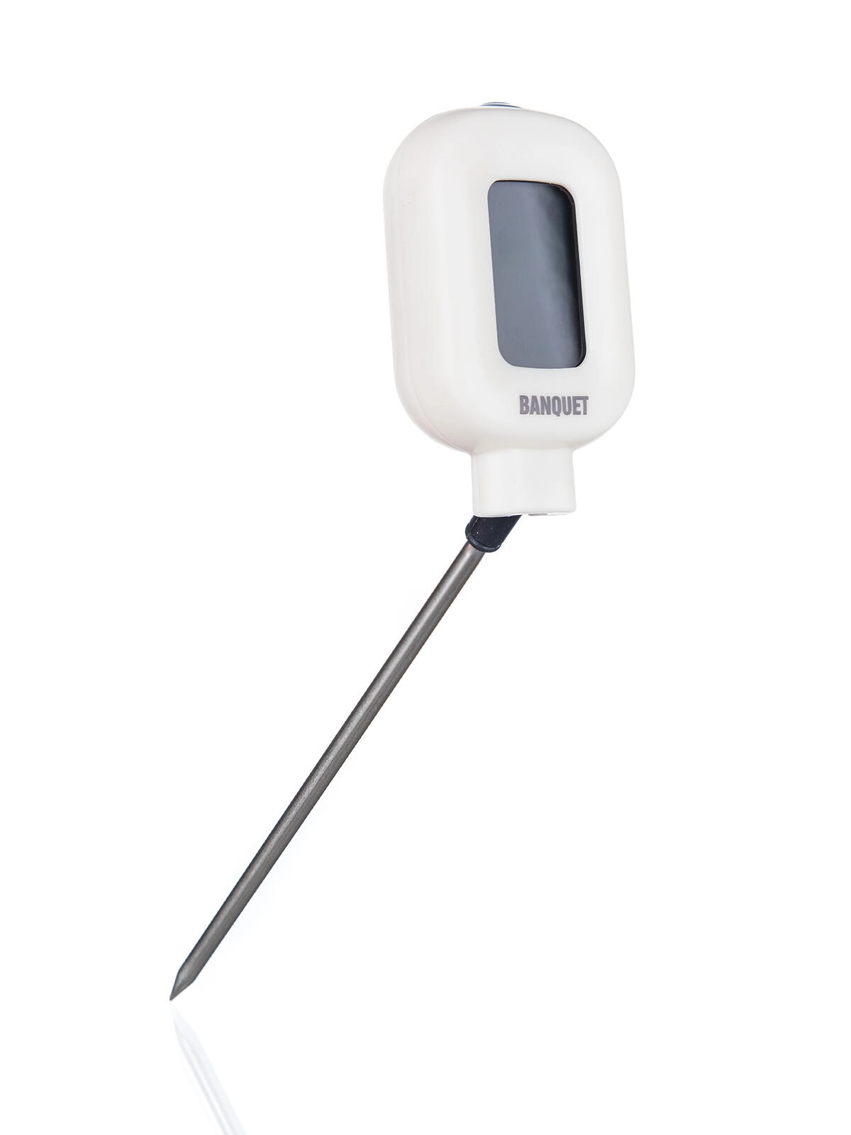 De robuuste roestvrijstalen sonde gaat gemakkelijk tot in het midden van vlees of deeg en geeft een snelle, betrouwbare temperatuuraflezing.