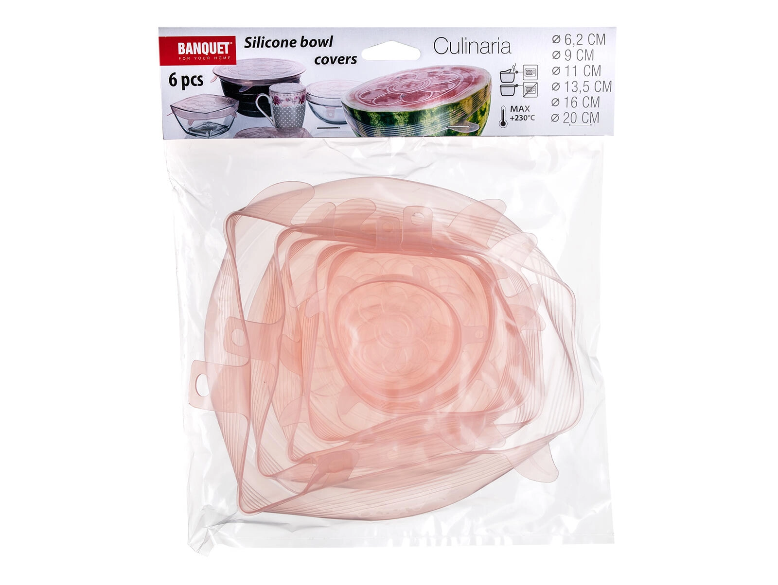 De praktische set siliconen deksels CULINARIA bevat zes maten voor een breed scala aan containers – van mokken en kleine schaaltjes tot grotere kommen of een aangesneden watermeloen. De elastische rand met uitstekende hechting zorgt voor een strakke afsluiting en beperkt geuroverdracht en morsen.